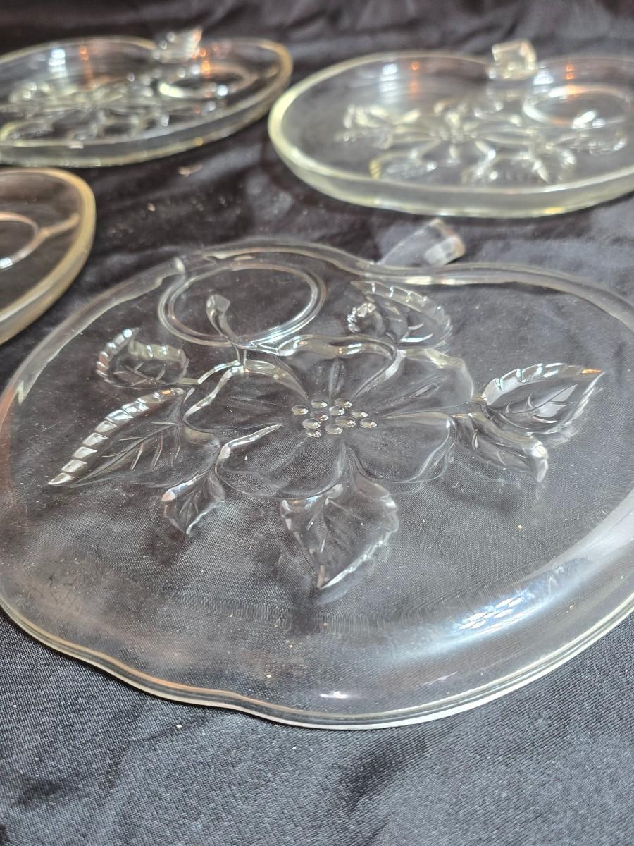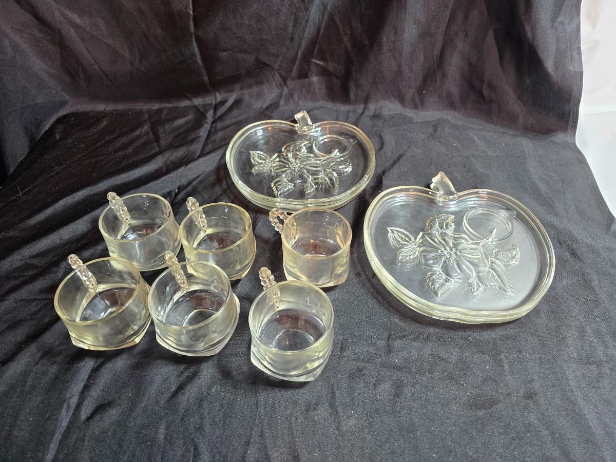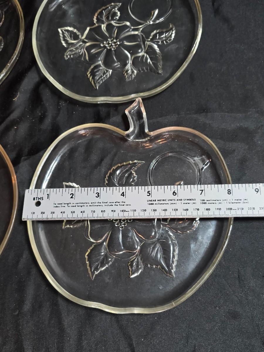 Four vintage Apple by Orchard 8" luncheon snack plates with Six Hazel Atlas glass snack cups