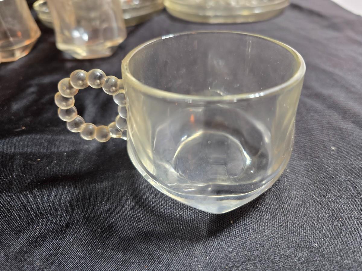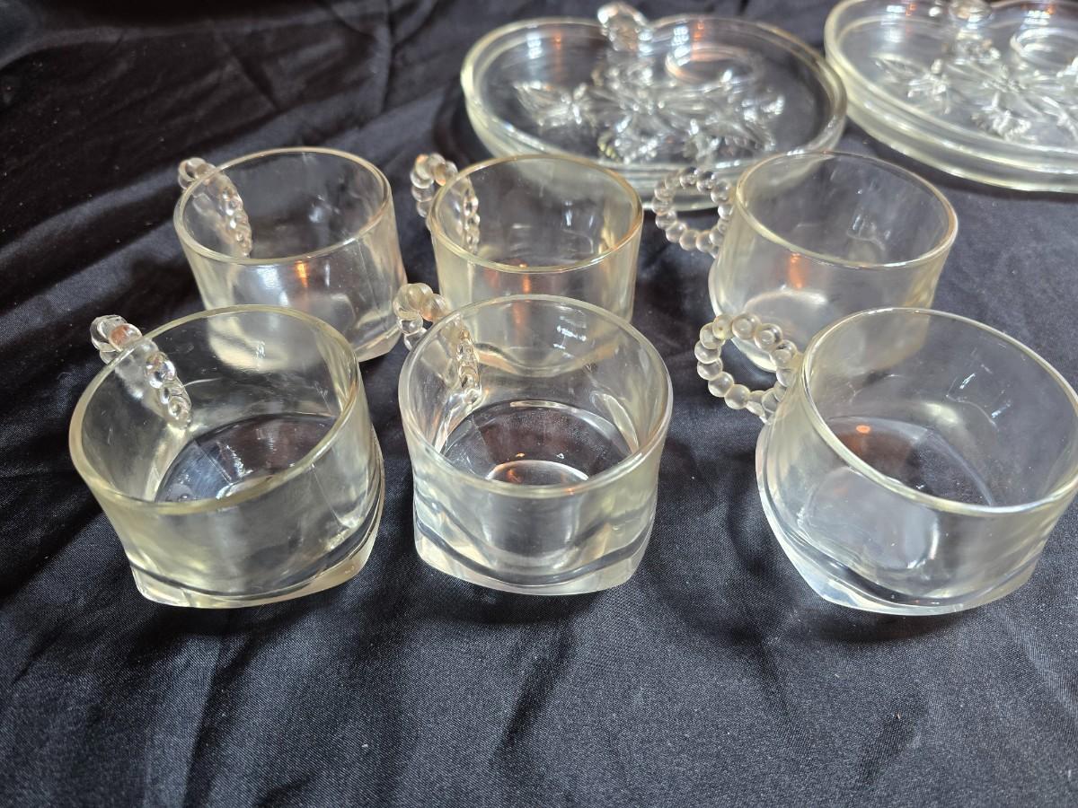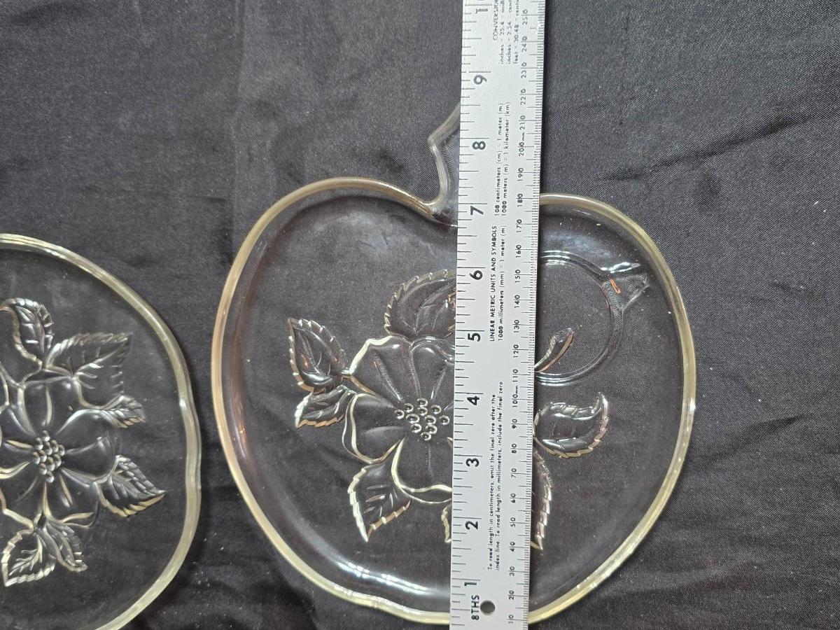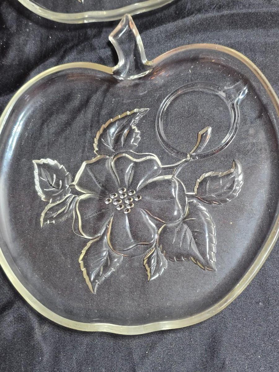 Four vintage Apple by Orchard 8" luncheon snack plates with Six Hazel Atlas glass snack cups