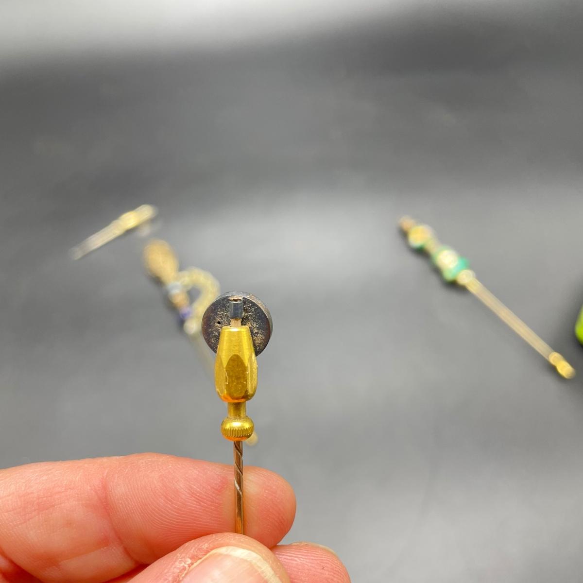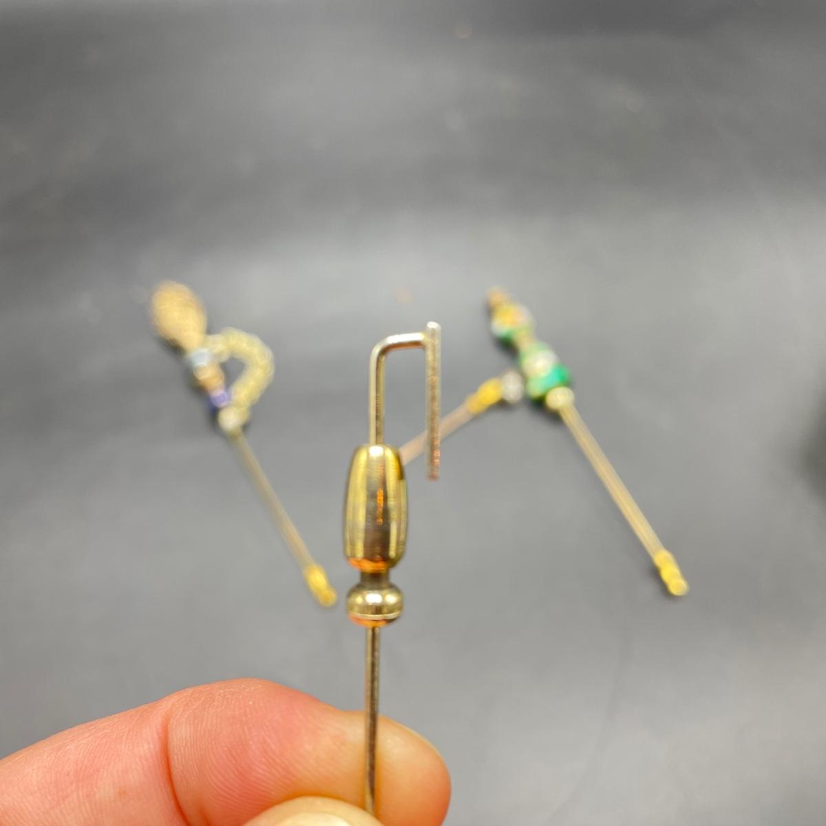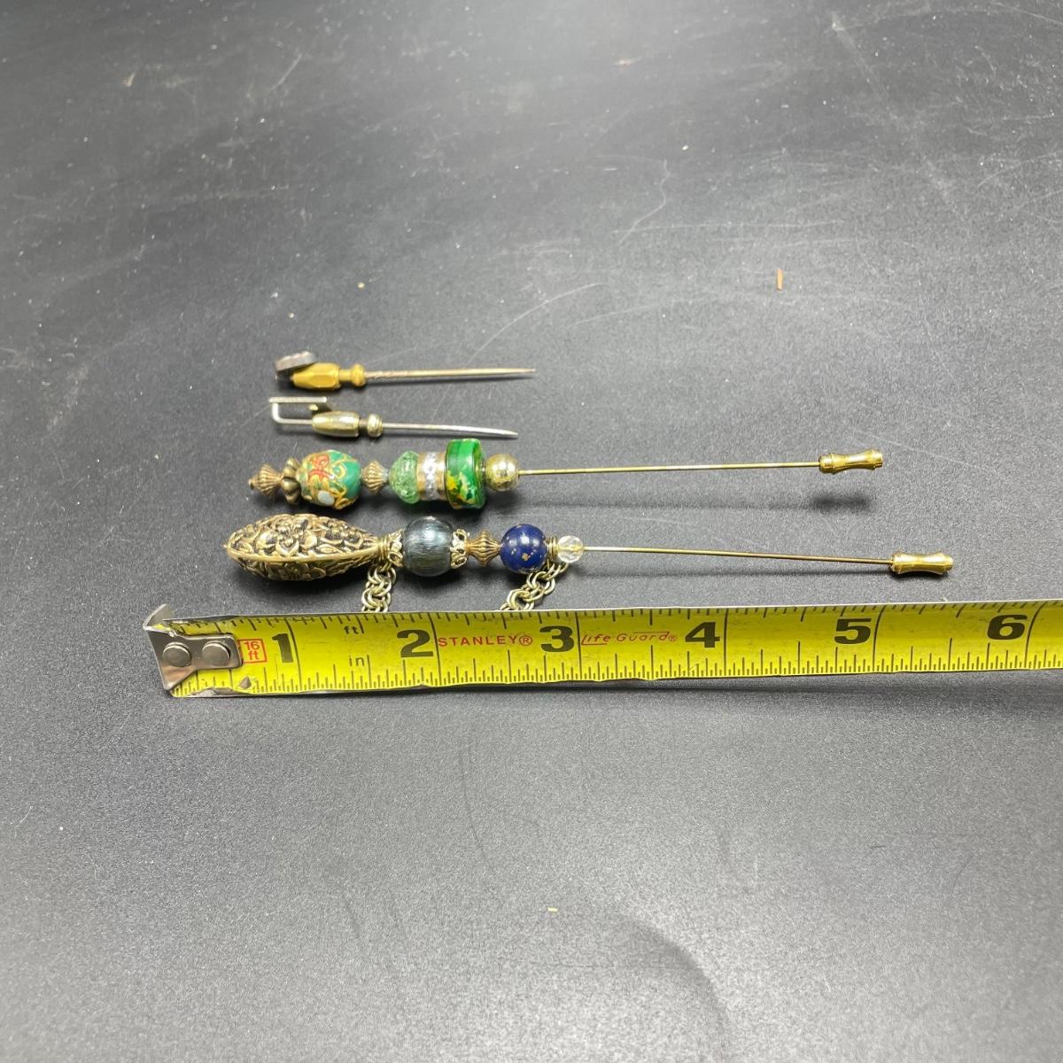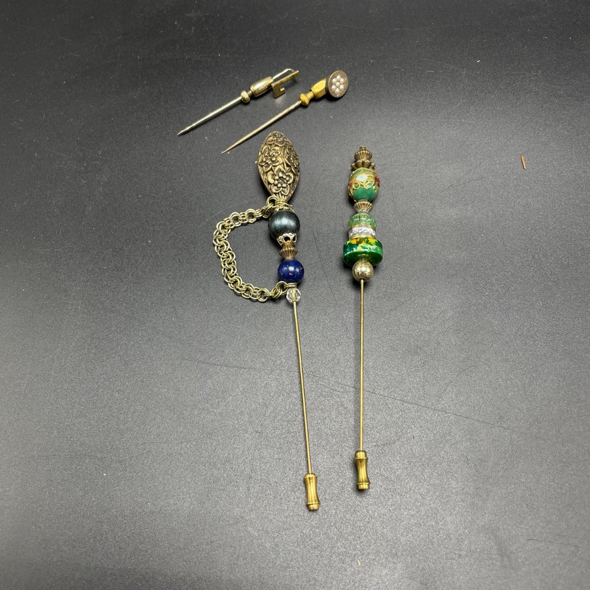 Four Vintage Hat Pins w/ 2 Porcelain Holders (FR - SS)