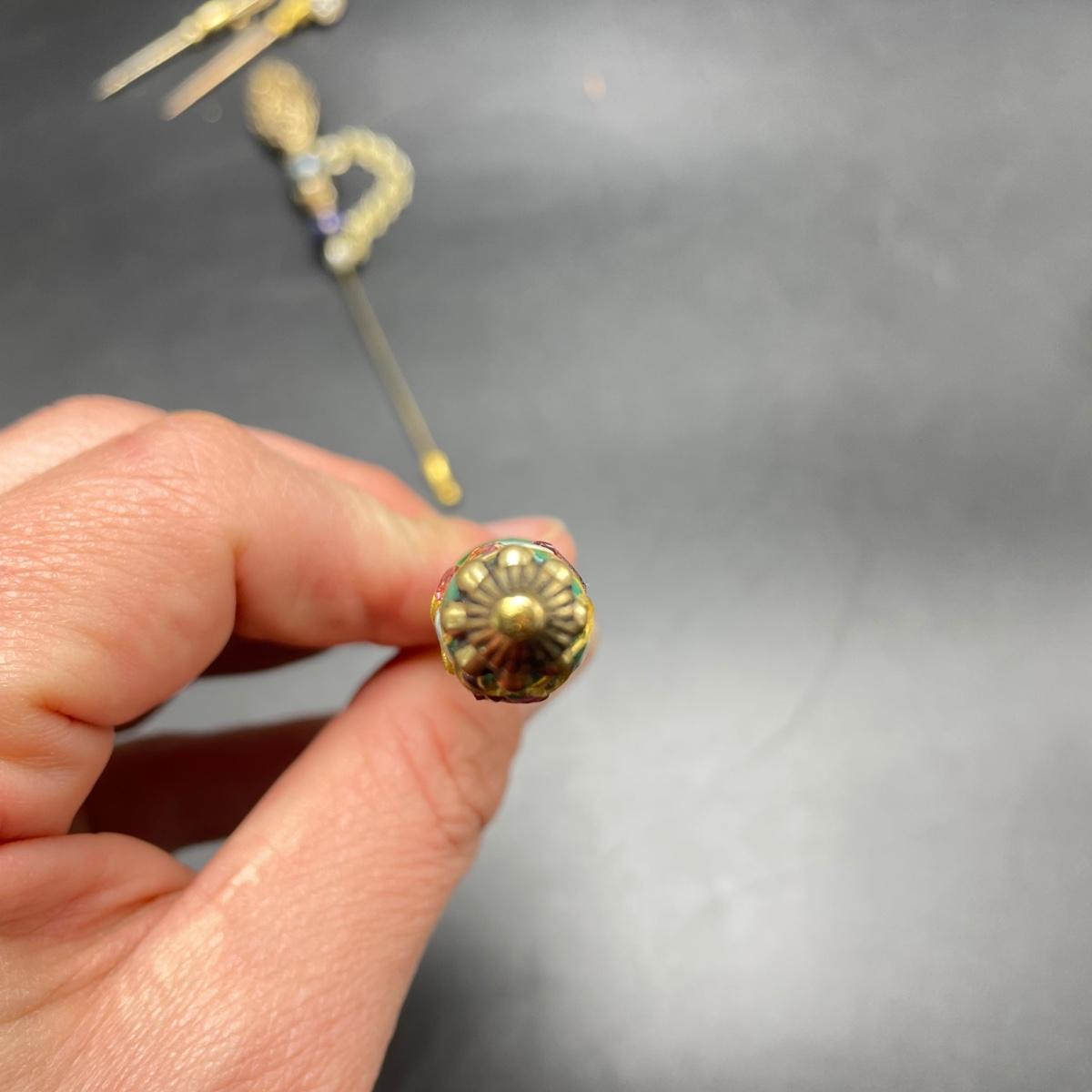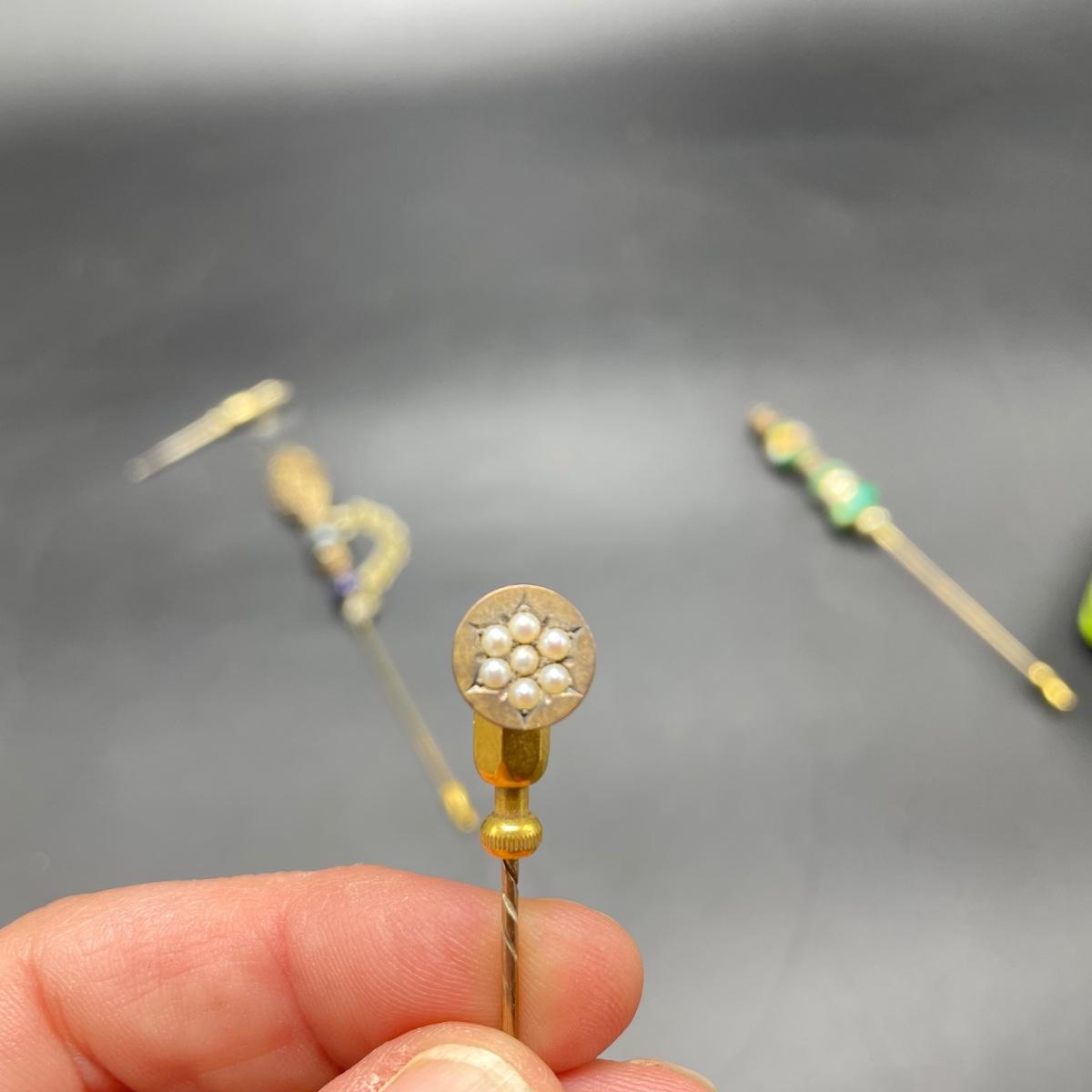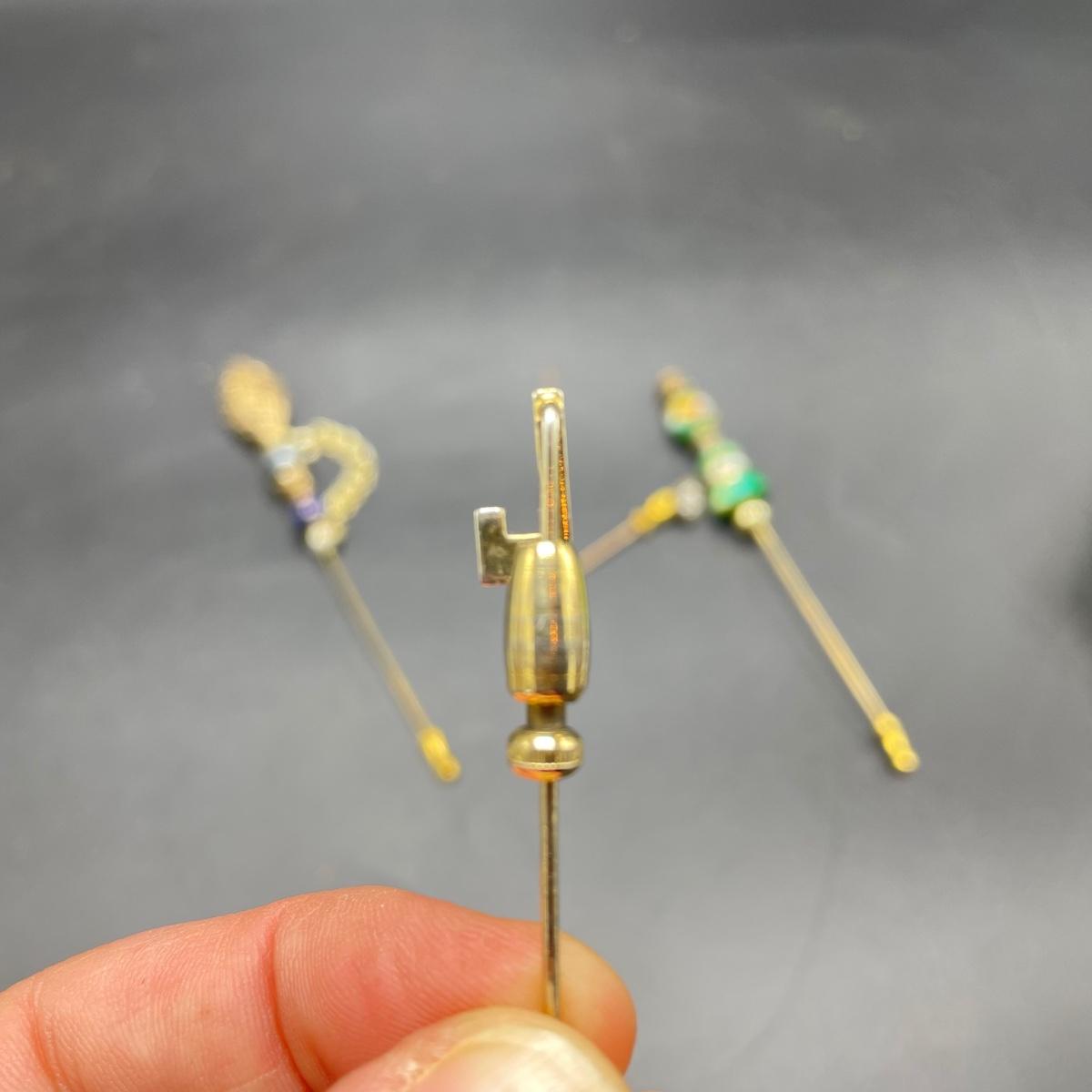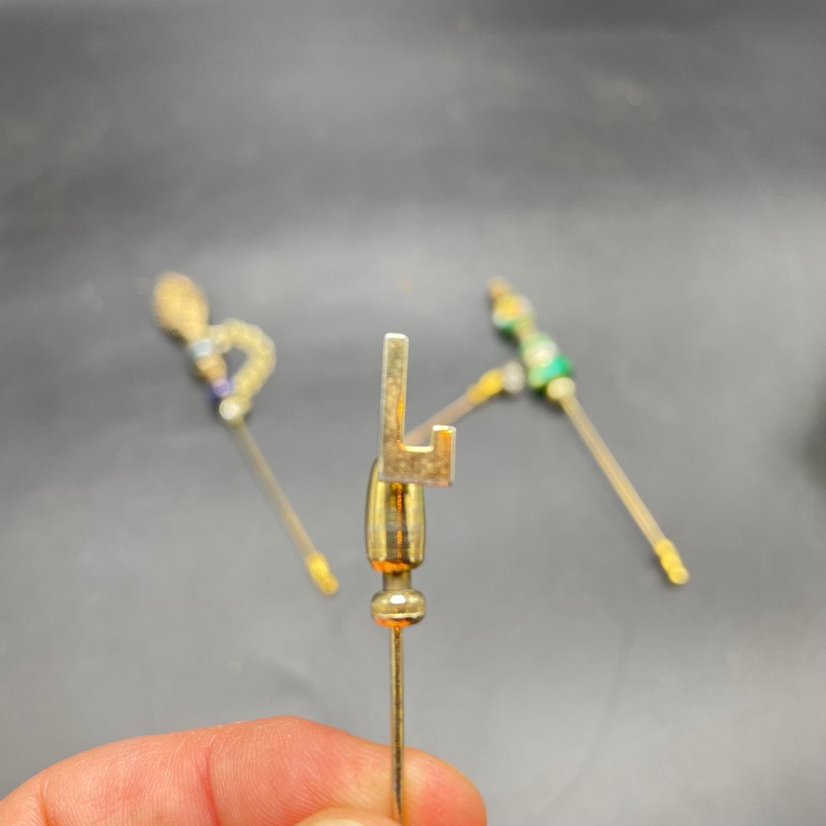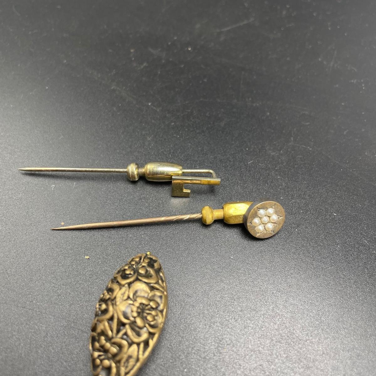 Four Vintage Hat Pins w/ 2 Porcelain Holders (FR - SS)