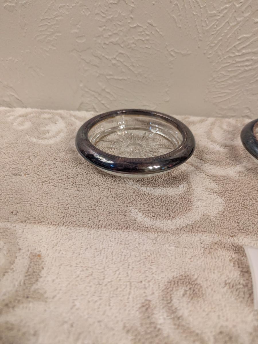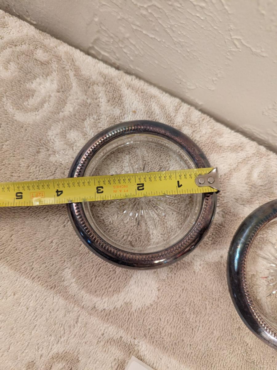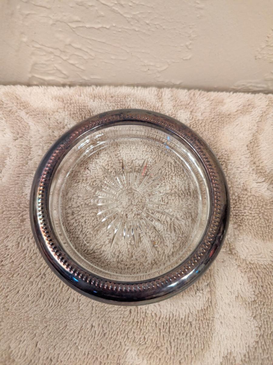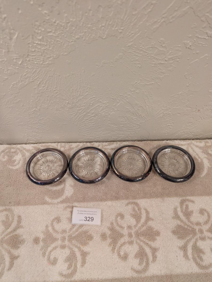 four vintage Italian Leonard silver-plated glass coasters with a starburst design