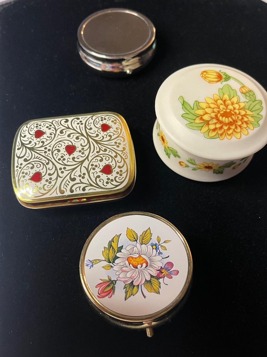 Foursome of pill boxes one signed lefton Japan.