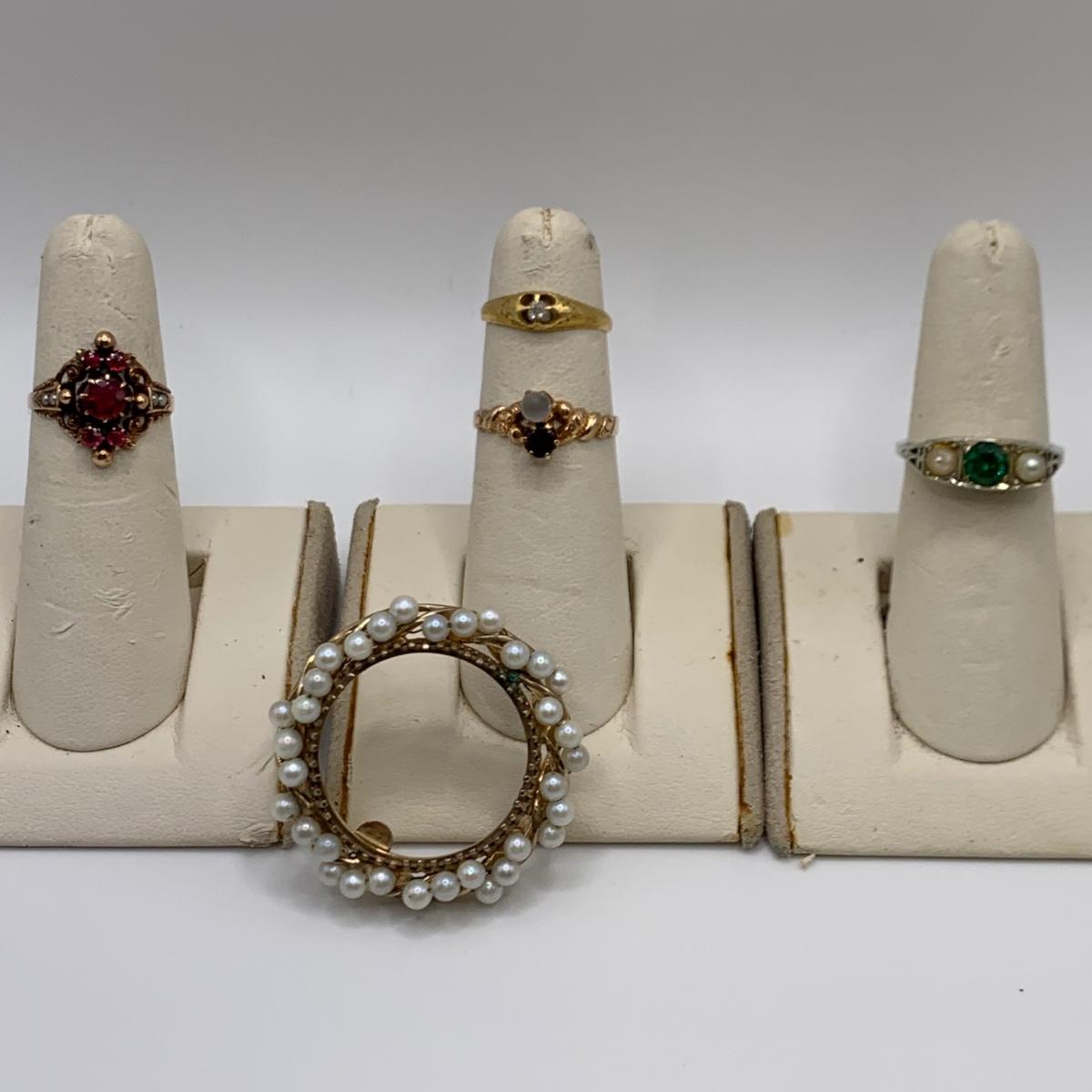Four Vintage Rings & a Pearl Brooch (B2-HS)