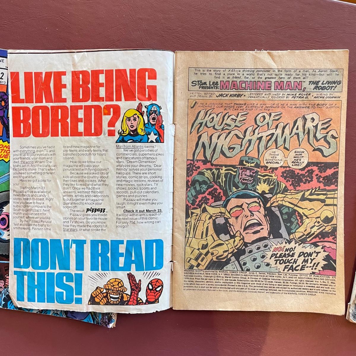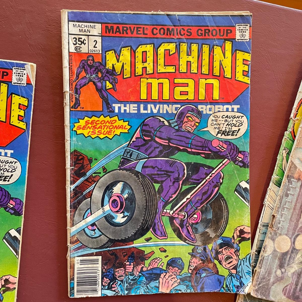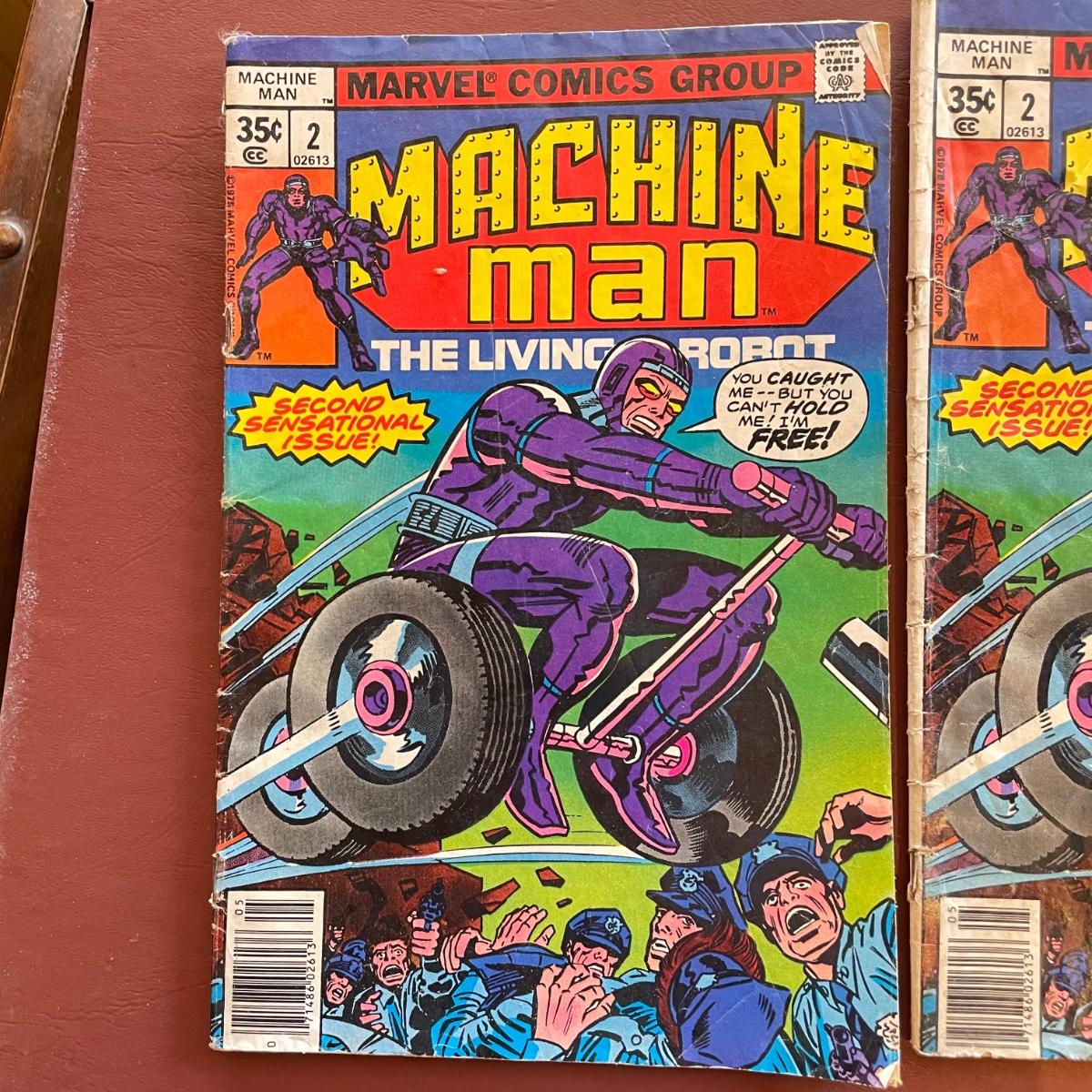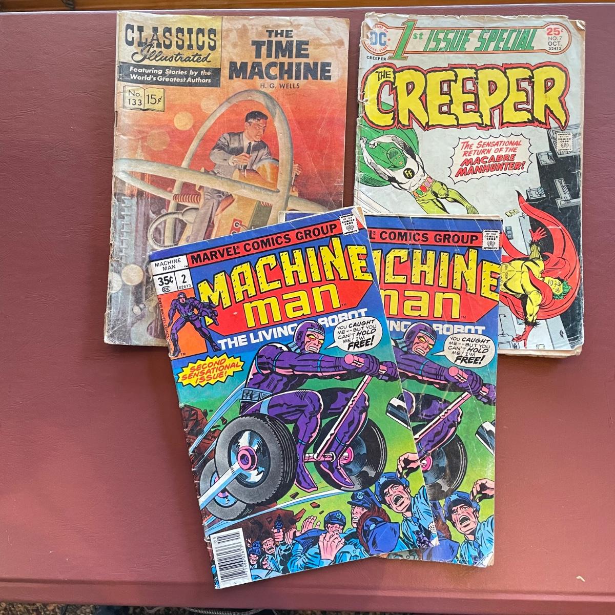 Two copies of Marvel’s Machine Manx The Living Robot Vol 1 No 2 from 1978. One is a bit brighter in condition. Lot also features Classics Illustrated H.G. Wells The Time Machine No 133 from July 1956 and DC’s The Creeper 1st Issue Special Vol 1 No 7 from 1975. The bindings are a bit fragile and frayed. See images. Shipping available.
