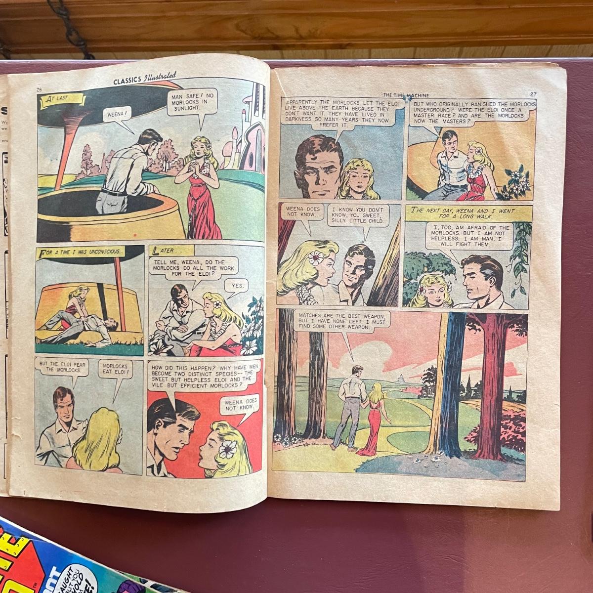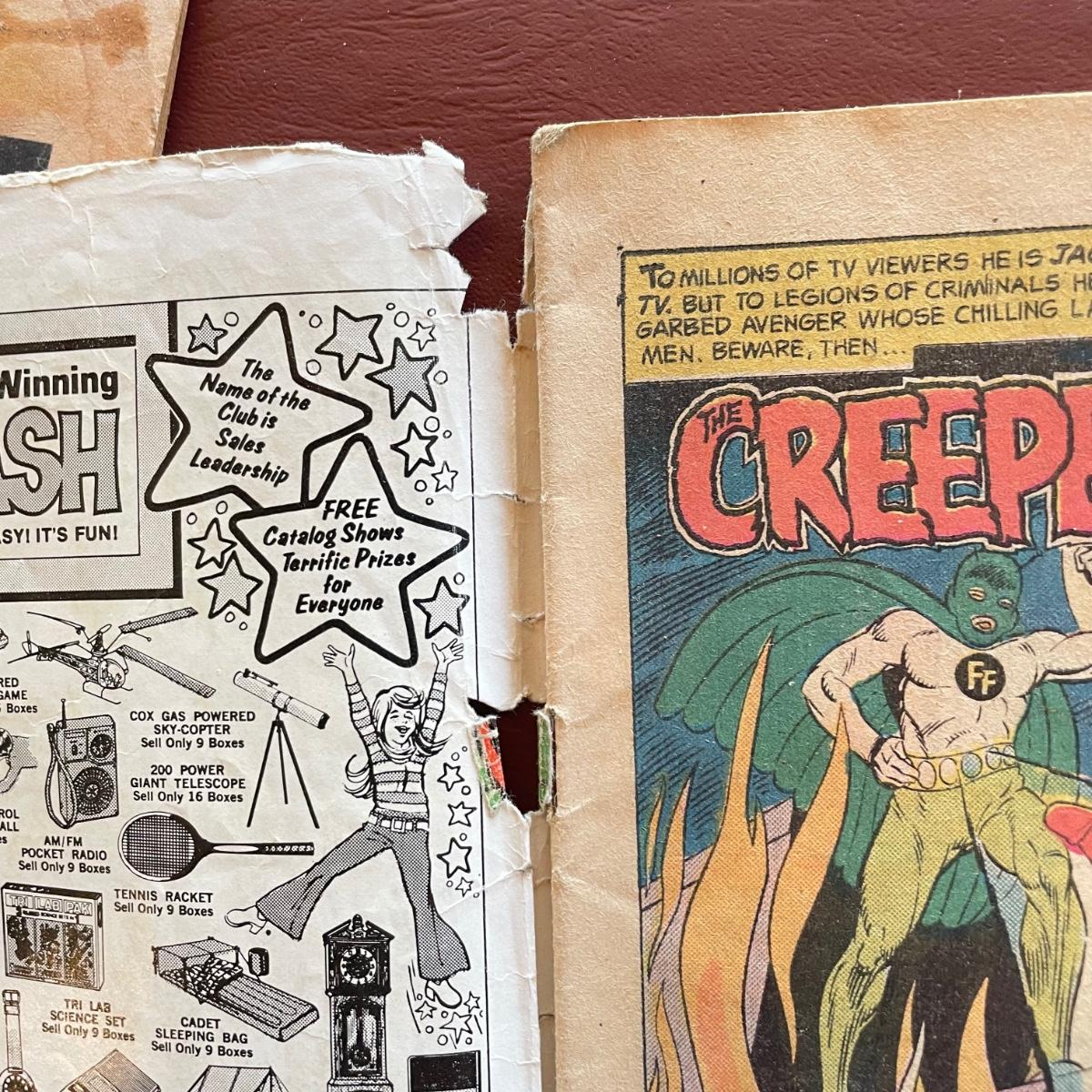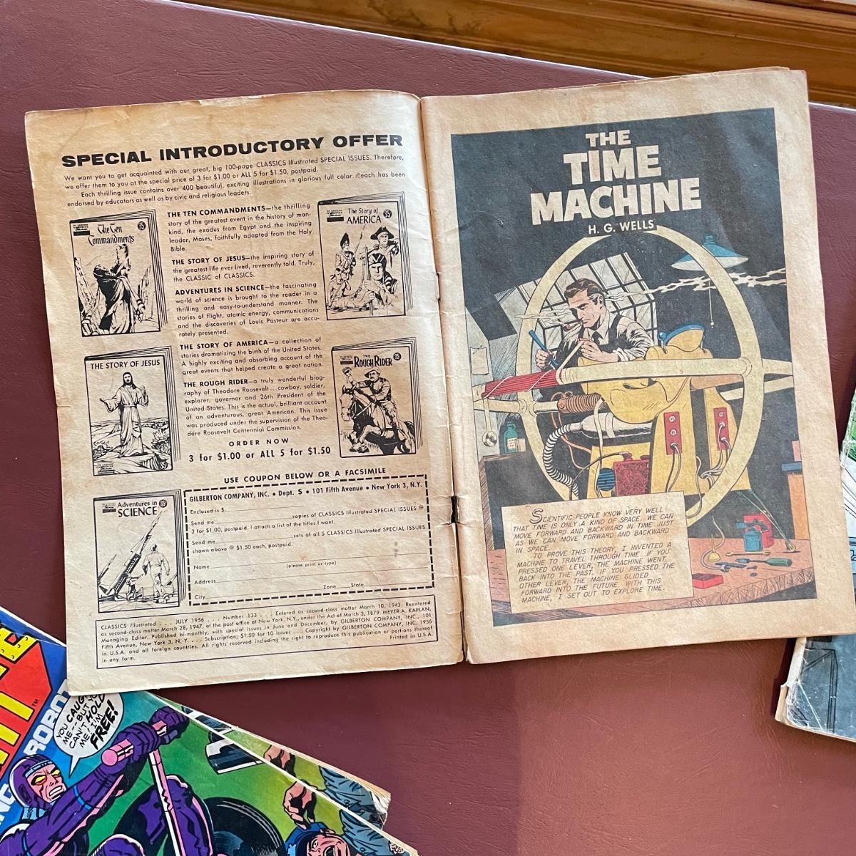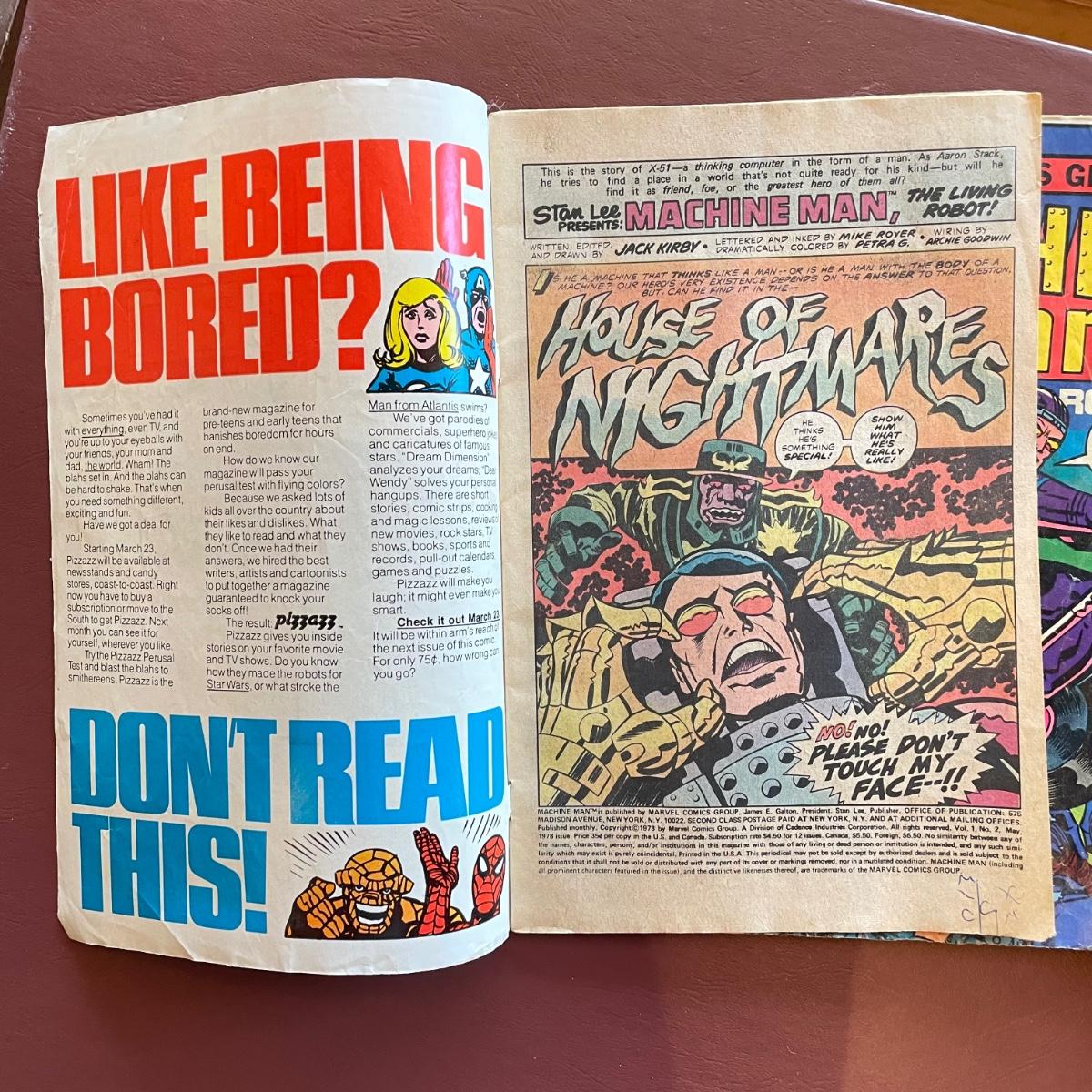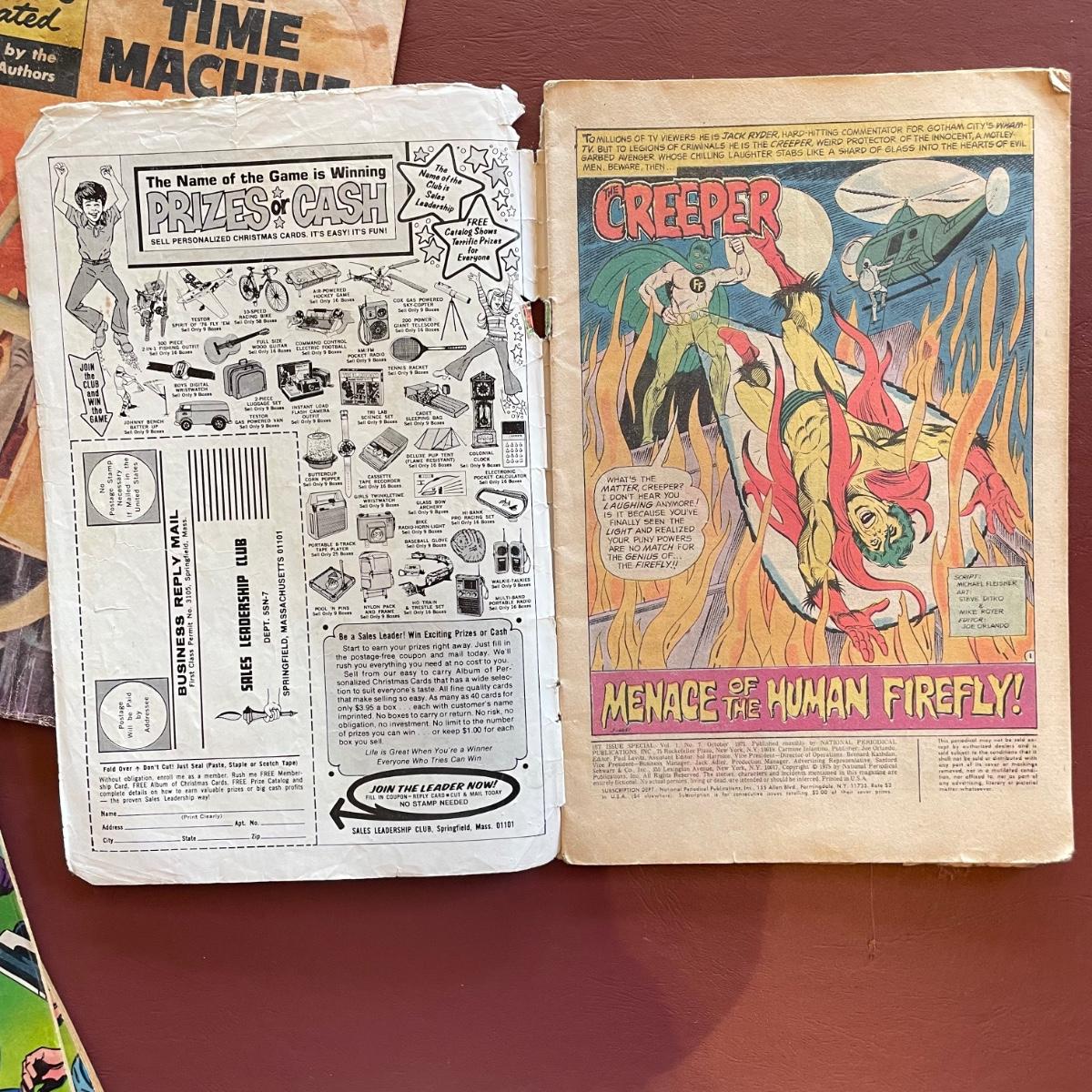 Two copies of Marvel’s Machine Manx The Living Robot Vol 1 No 2 from 1978. One is a bit brighter in condition. Lot also features Classics Illustrated H.G. Wells The Time Machine No 133 from July 1956 and DC’s The Creeper 1st Issue Special Vol 1 No 7 from 1975. The bindings are a bit fragile and frayed. See images. Shipping available.