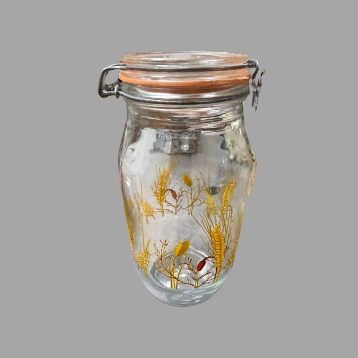 This is a typical vintage set. Jars measure 10", 9", 6" and 4"