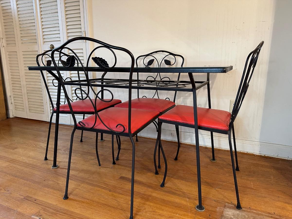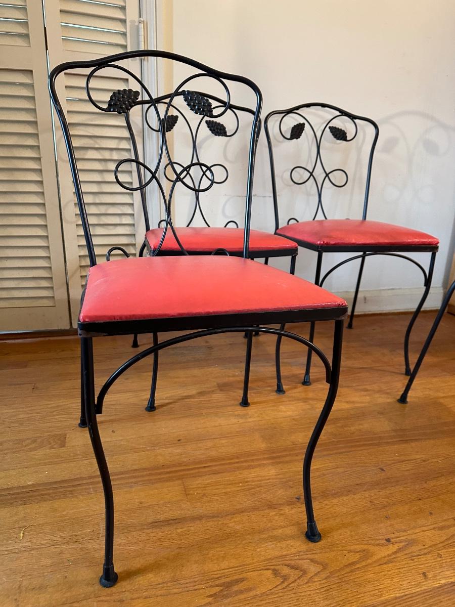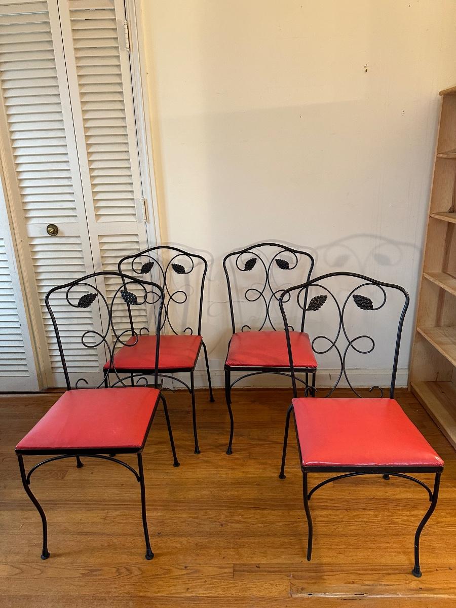 Four Vintage Wrought Iron Chairs & Table (See description)