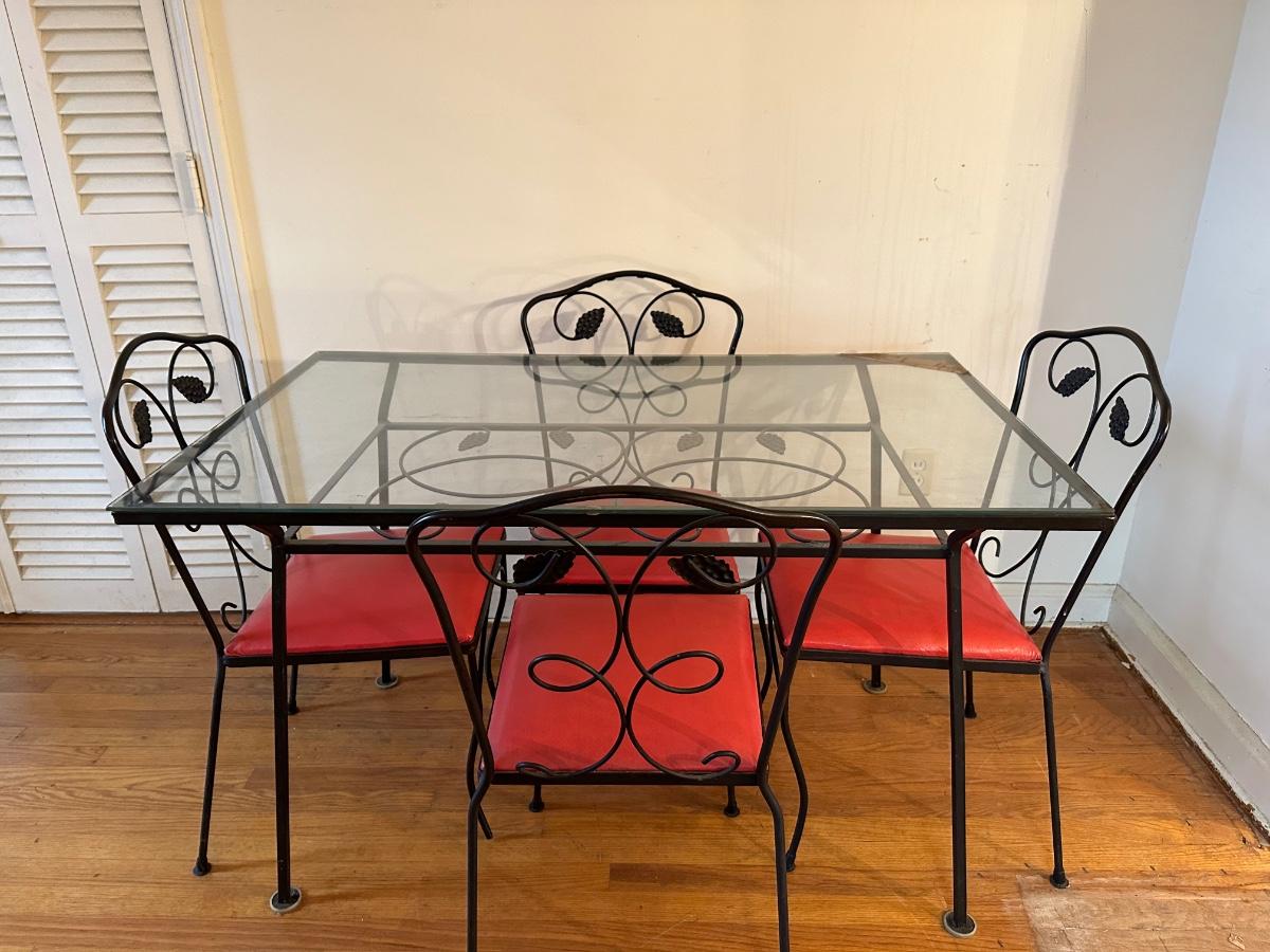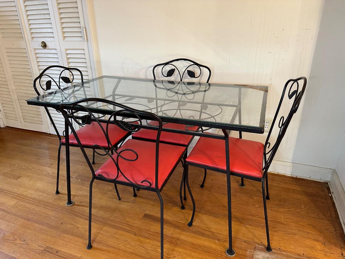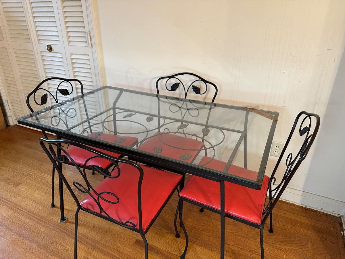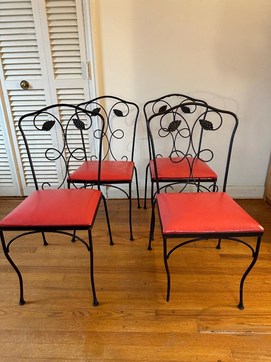 Four Vintage Wrought Iron Chairs & Table (See description)