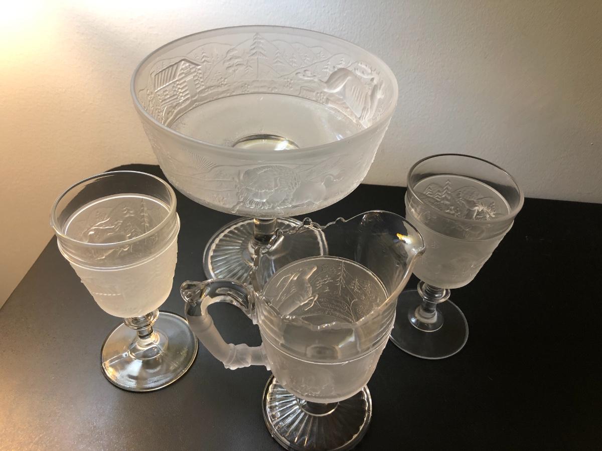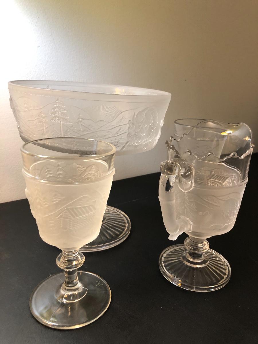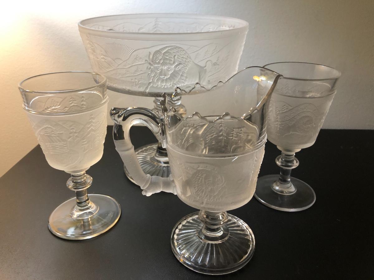 Four “Westward Ho” Pioneer Frosted Glass Pieces -Lot 125