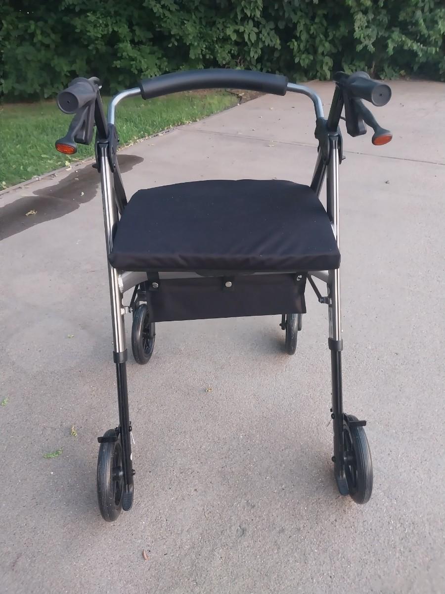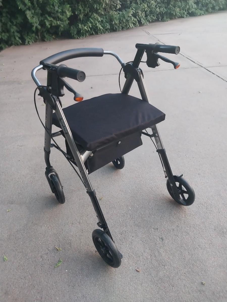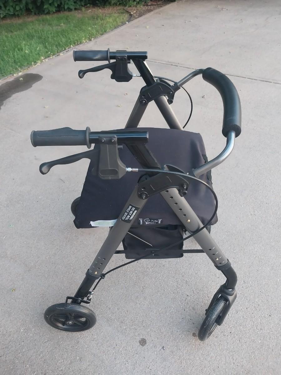 SERVES AS A STAND-UP WALKER AND SEATED TRANSPORTING CHAIR