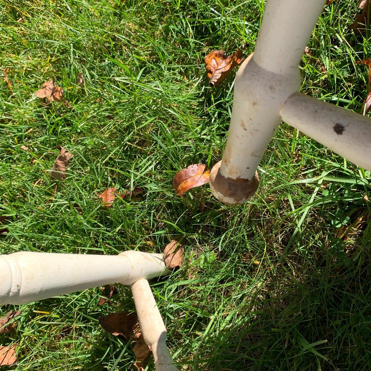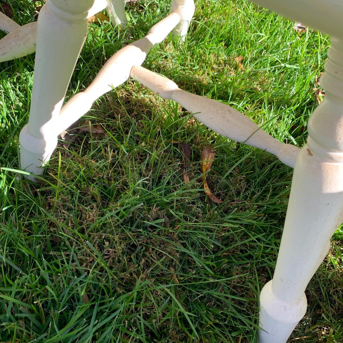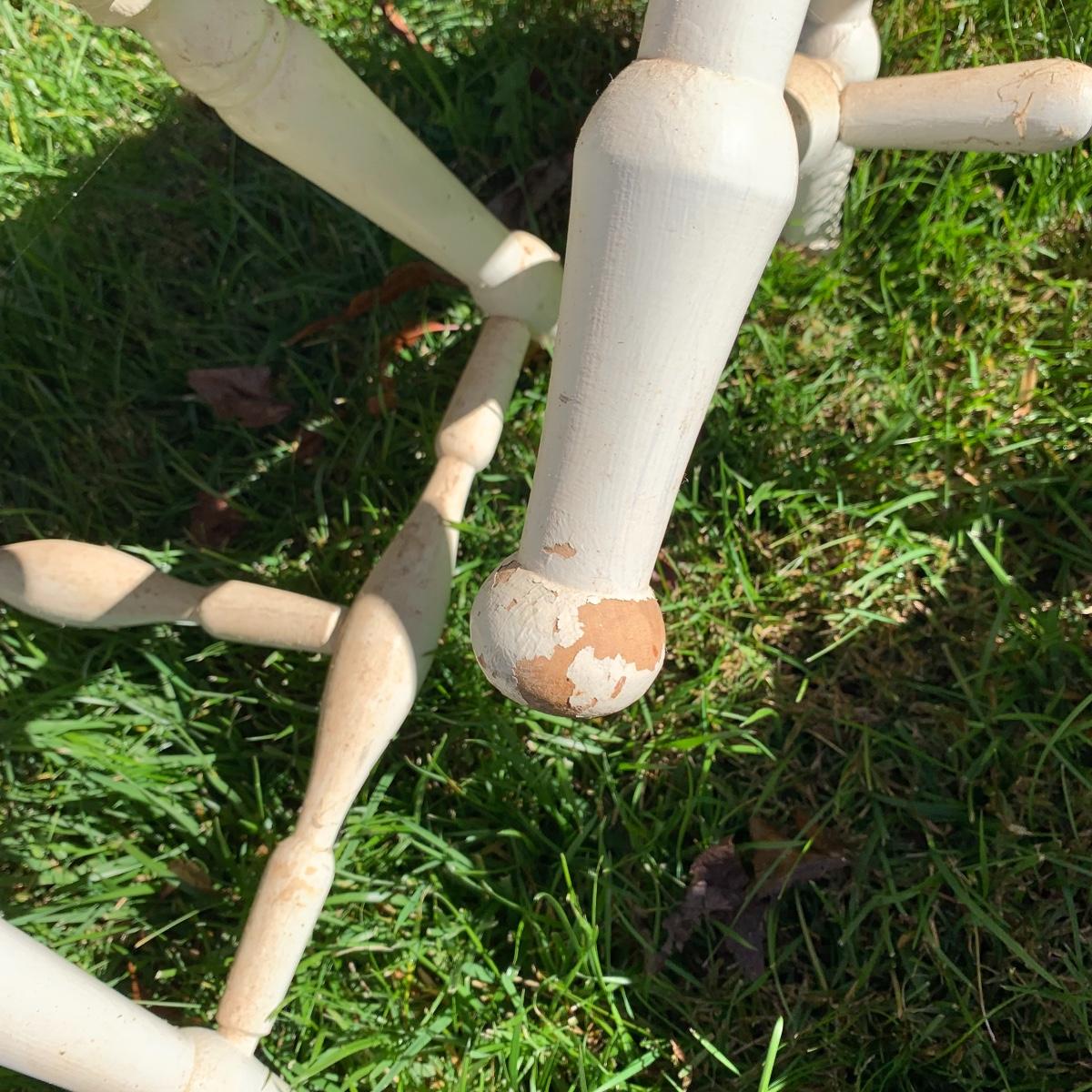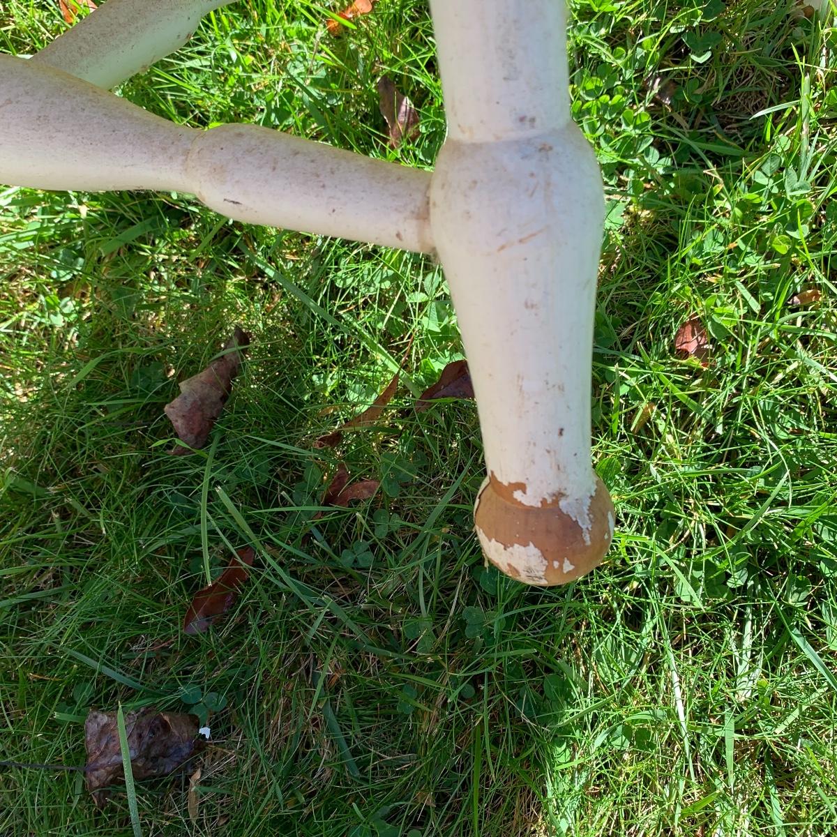 Four matching wooden chairs painted white. The paint is a bit chipped on all chairs, mostly on the feet, and are a bit dusty. The chairs are structurally in good condition. Chair dimensions are 17” x 18” x 34”. The seat height is 17”. Local Pickup Only