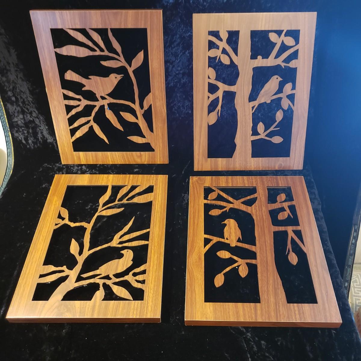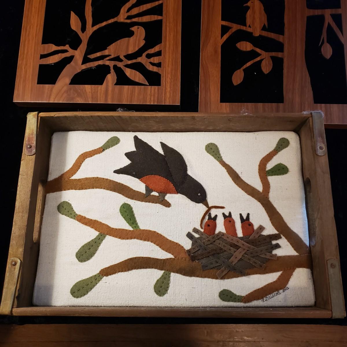 Four Wood Bird Cut Outs and Felted Bird Art (LR-KD)