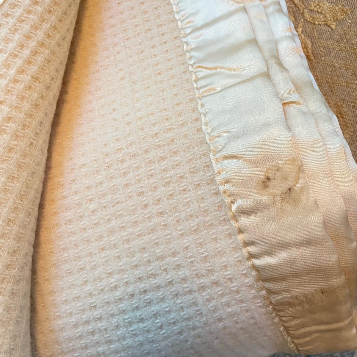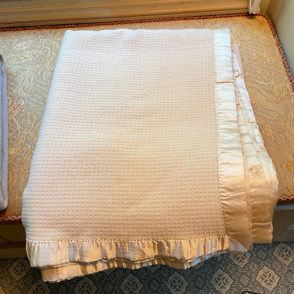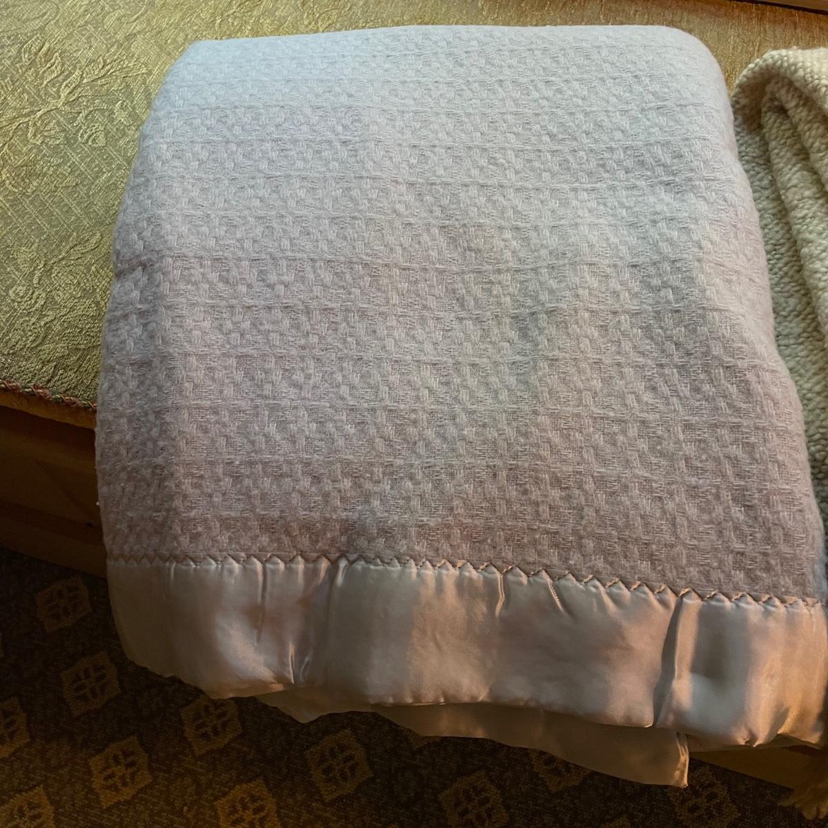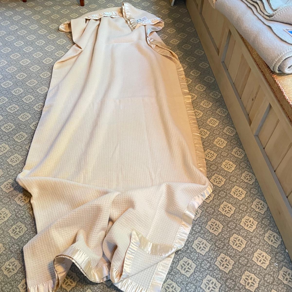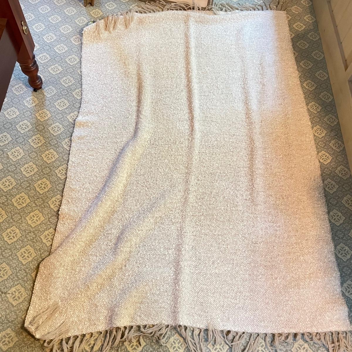 Four wool blankets, two light grey, two cream colored. One cream colored blanket (76” x 100”) has a spot or stain on its silky ribbon, see photos. The Three Weavers throw is the smallest at 48” x 72”, the largest is the Manta, its tag stating 90” x 108”. The other grey blanket is 88” x 96”. See images. Local pick up only.