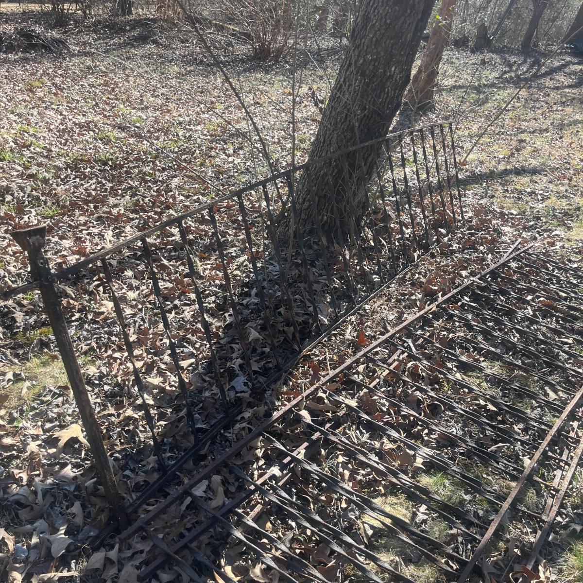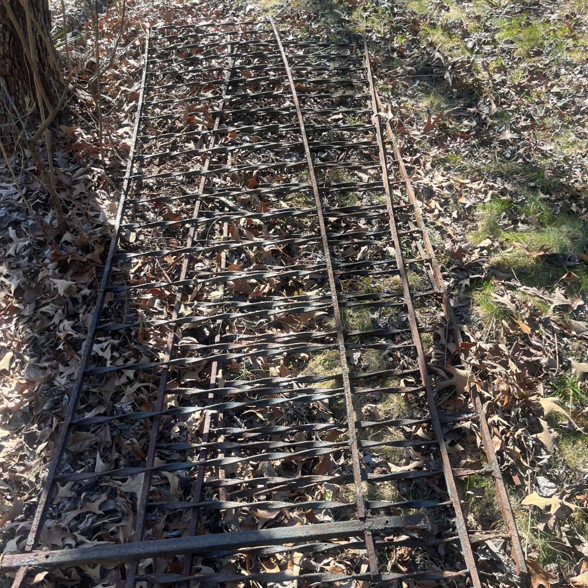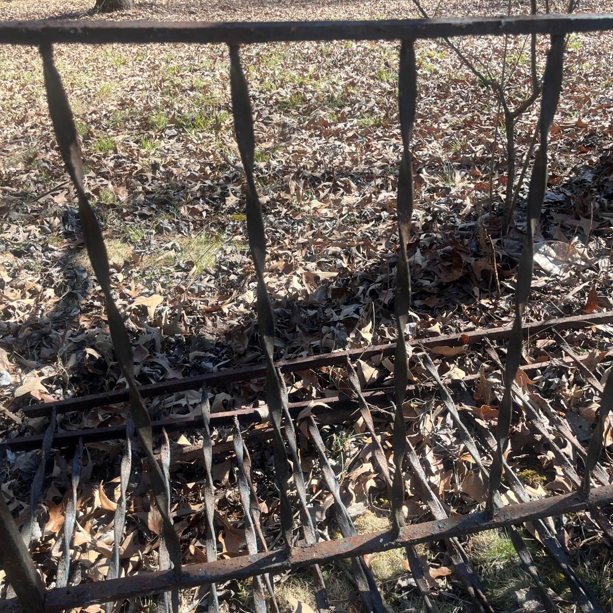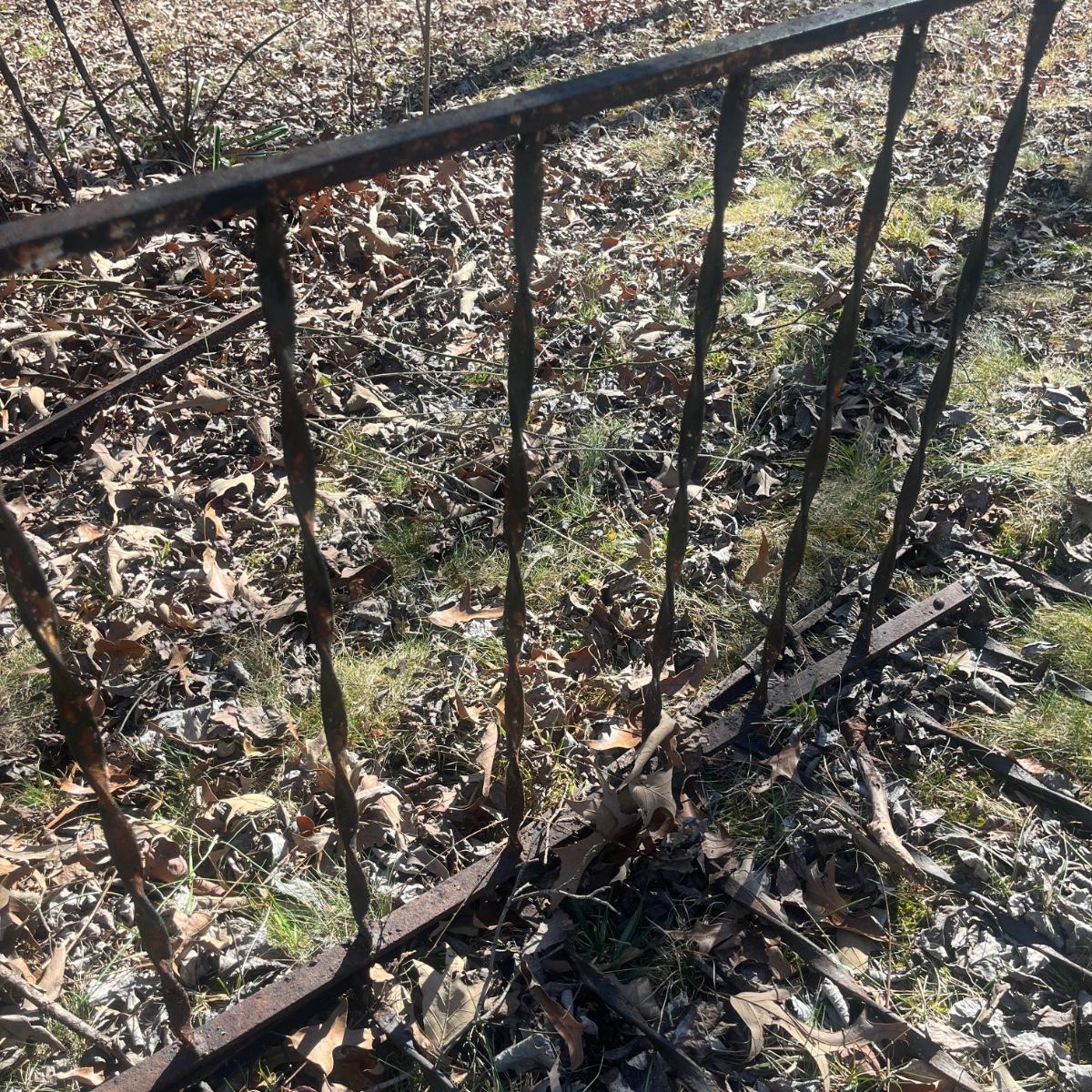 Lot includes four wrought iron railings with the longest measuring 118” x 1” x 27”H. Railing has rust and scratches, see pictures.