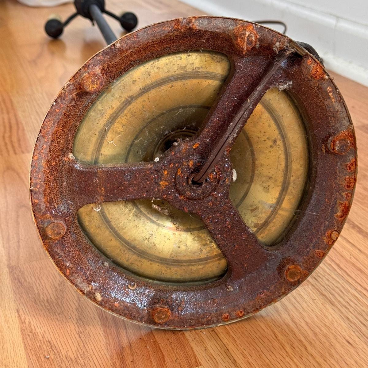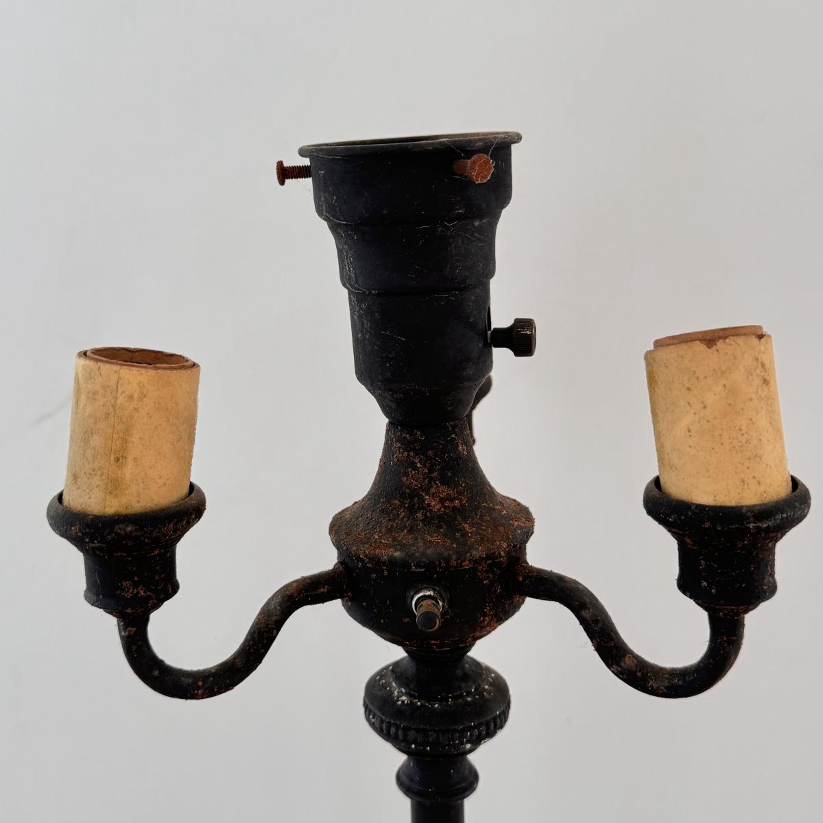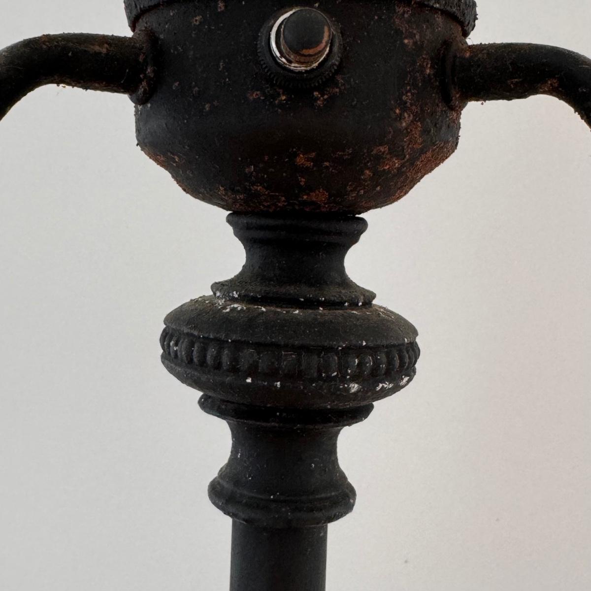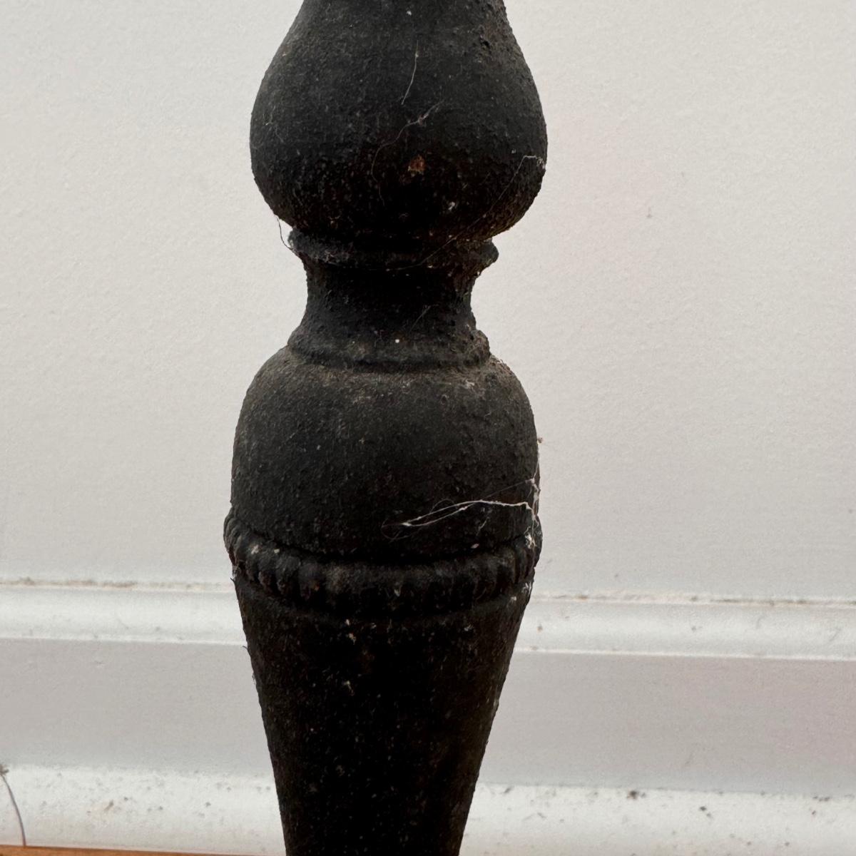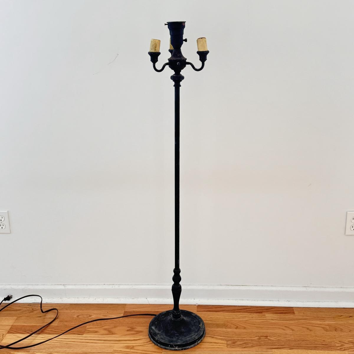 This lot includes one four-socket metal floor lamp that measures 10” x 52”H. Only three of the sockets powered on when plugged in - see pictures included. There appears to be some rust throughout - see pictures included. Local pickup only.