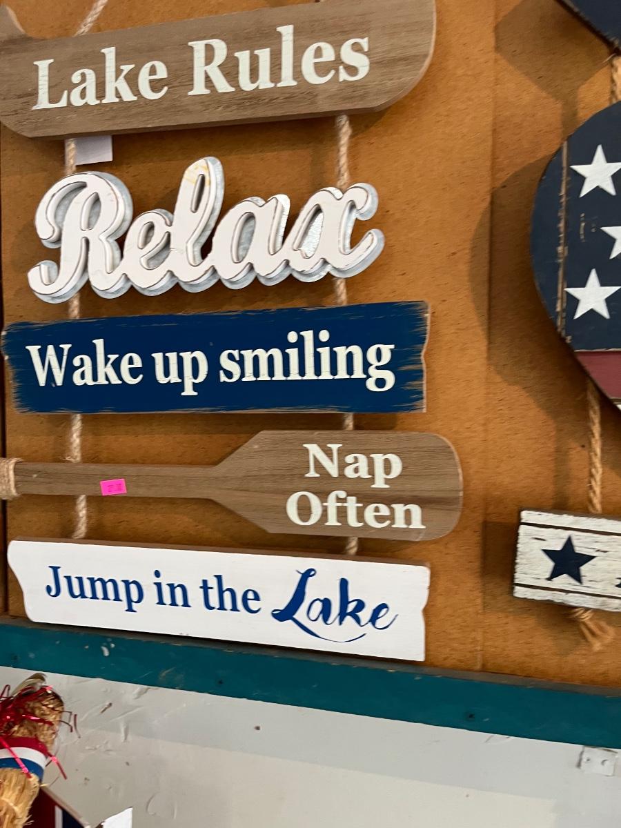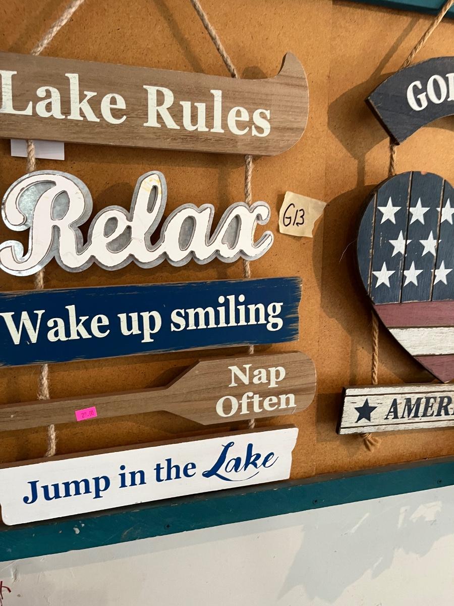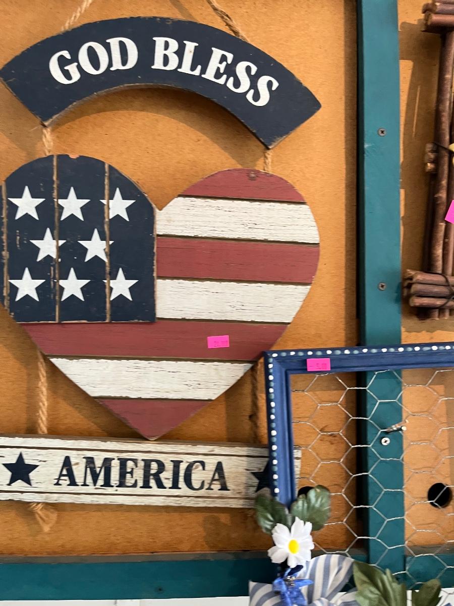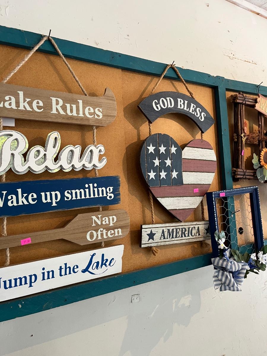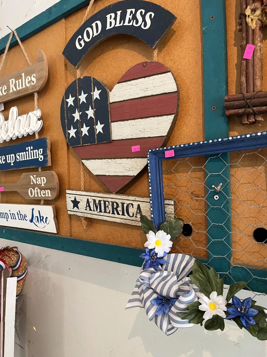 Fourth of July Decorations and Painted signs.