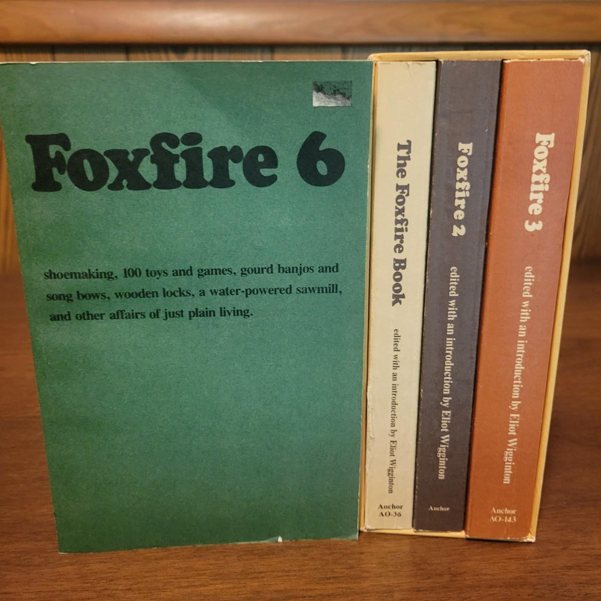 A collection of four Foxfire books by Elliot Wiggington in good condition. The books are a collection of mountain crafts, stories, recipes and other affairs of plain living. Lot includes volumes 1,2,3 and 6. Shipping available