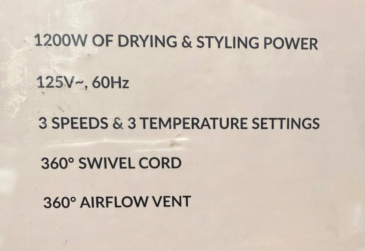 New in box, 1200 watt dryer with 5 Detachable tools.