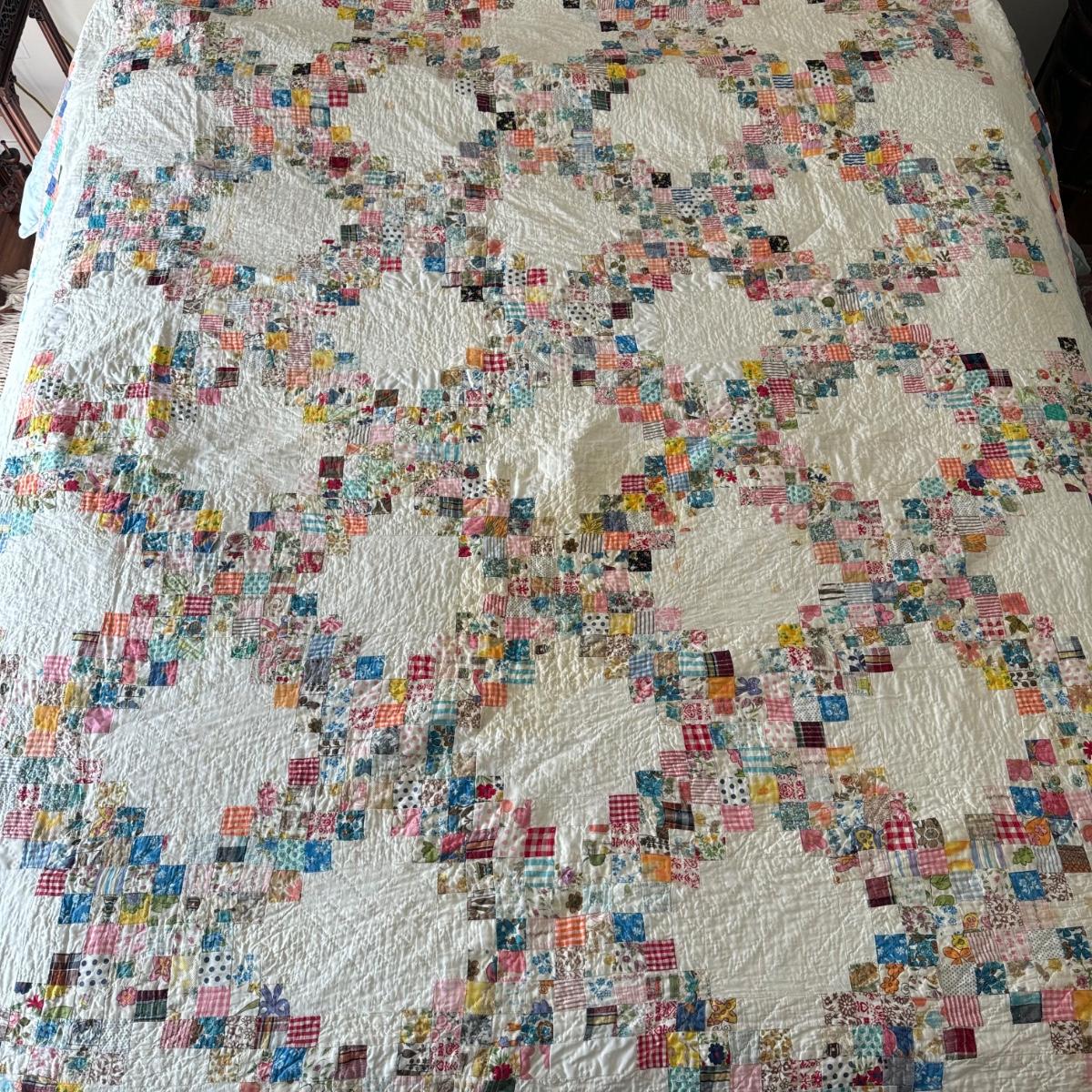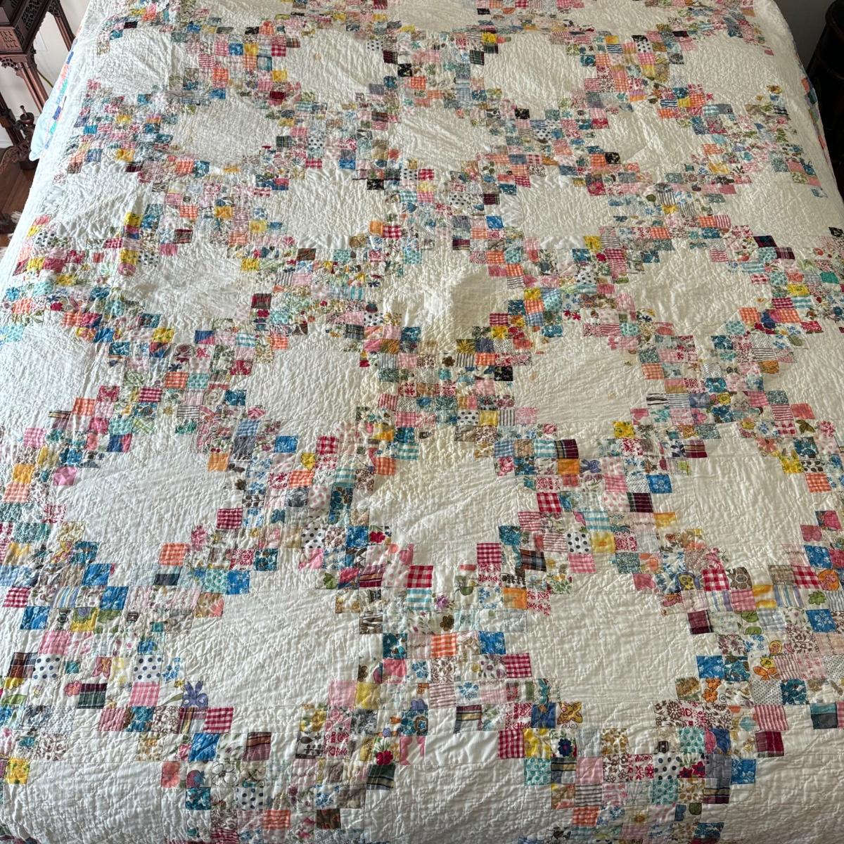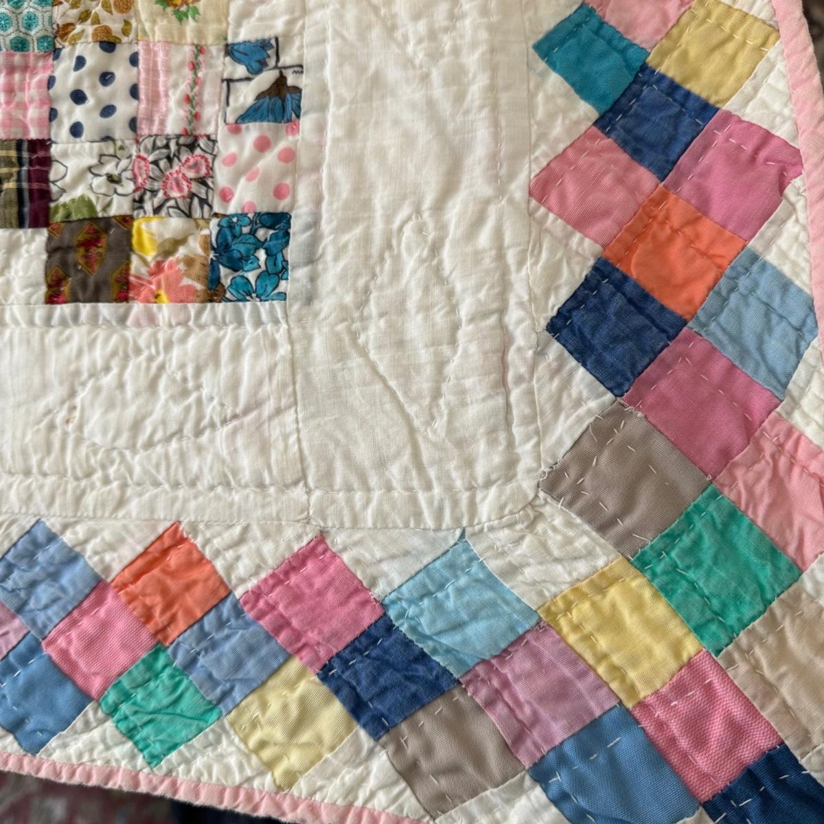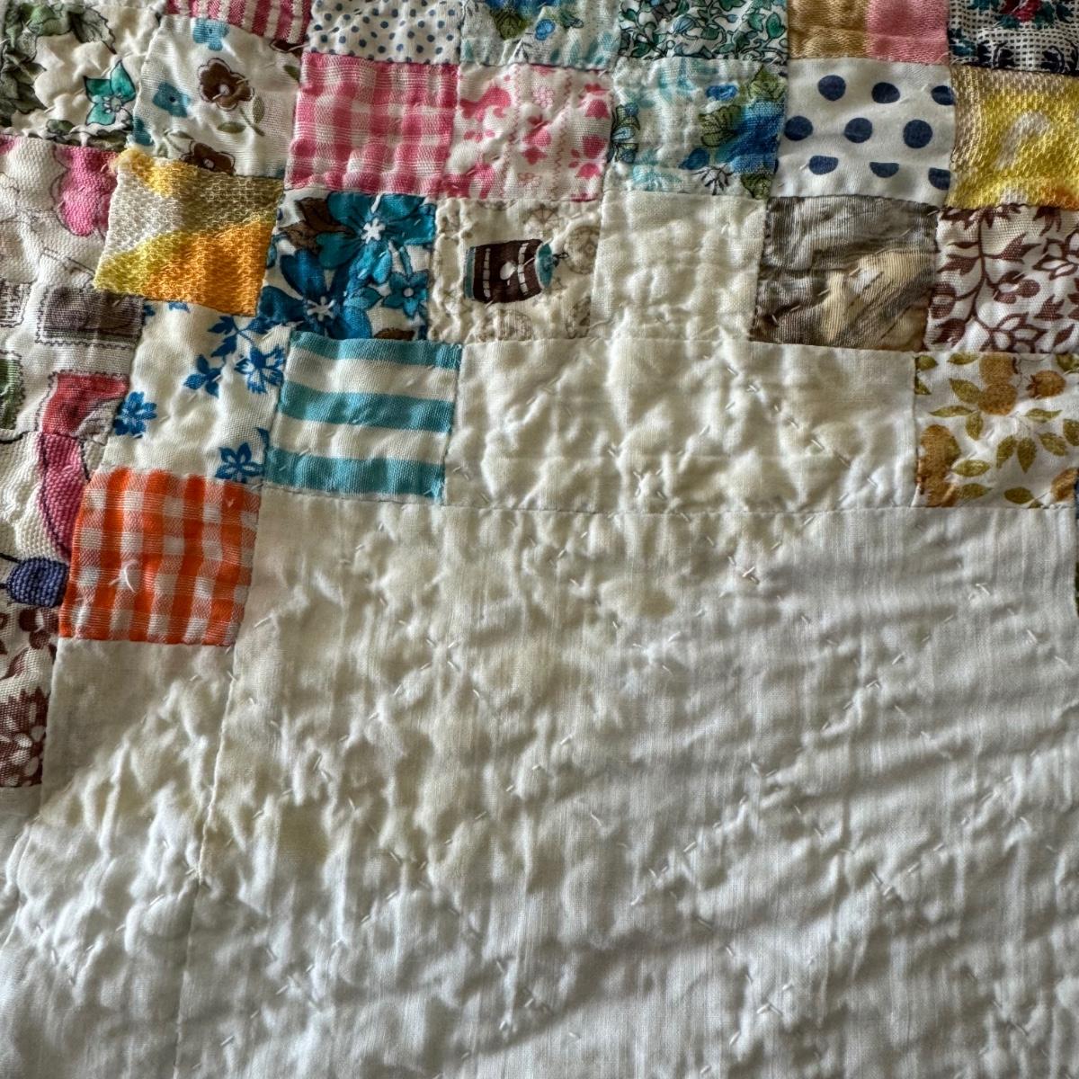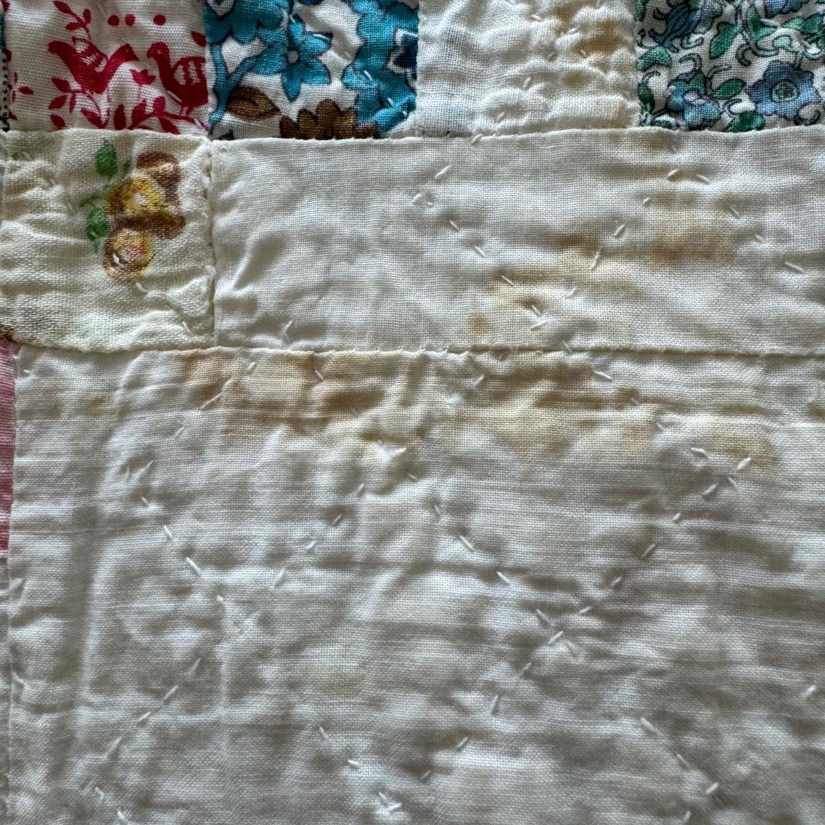 FR078 Large Handmade Vintage Postage Stamp Pattern Reversible Quilt