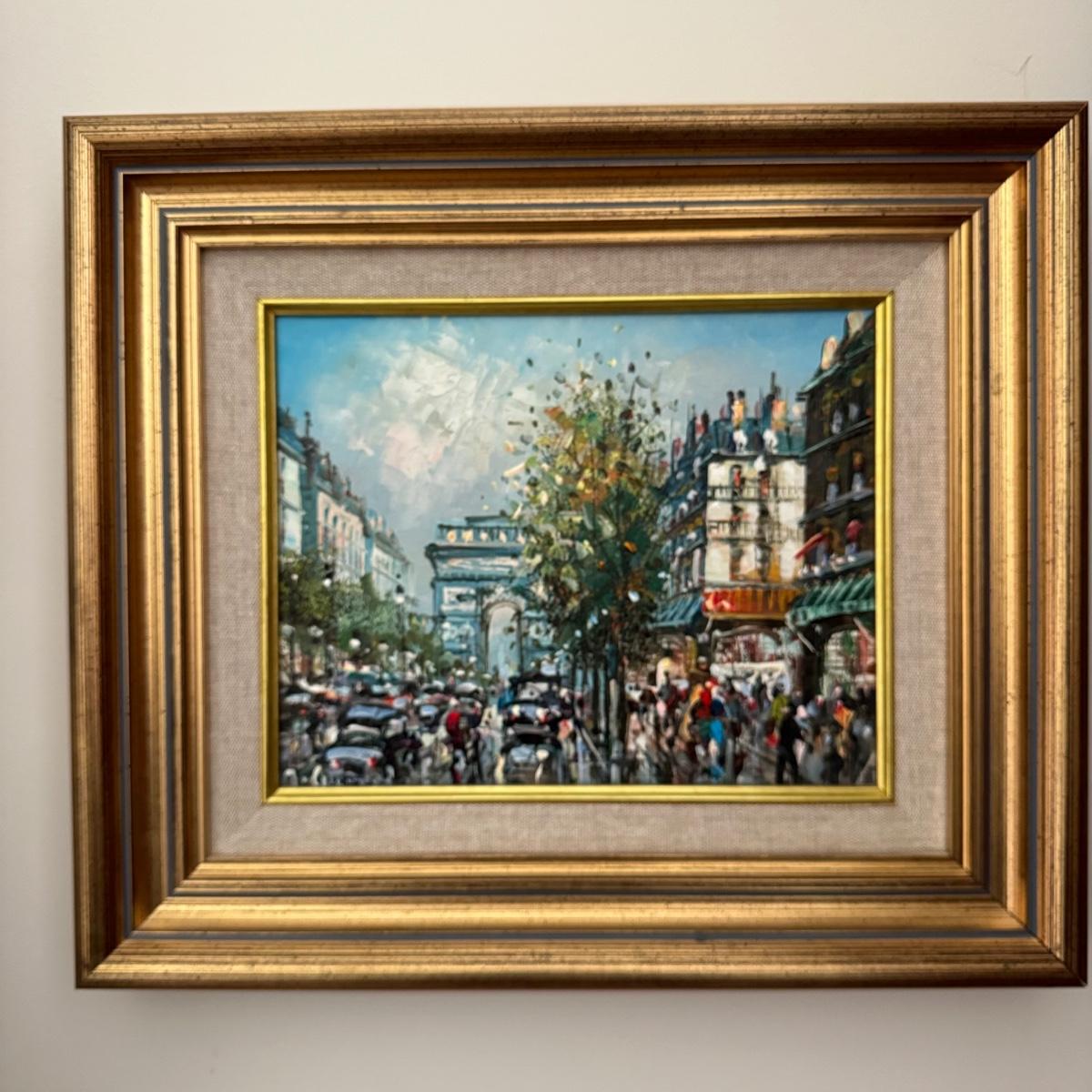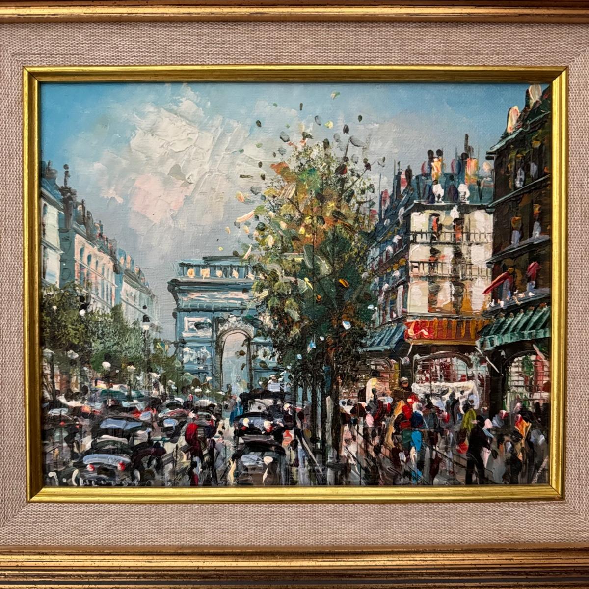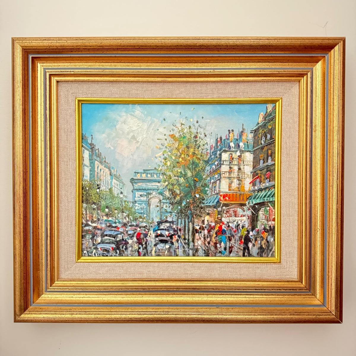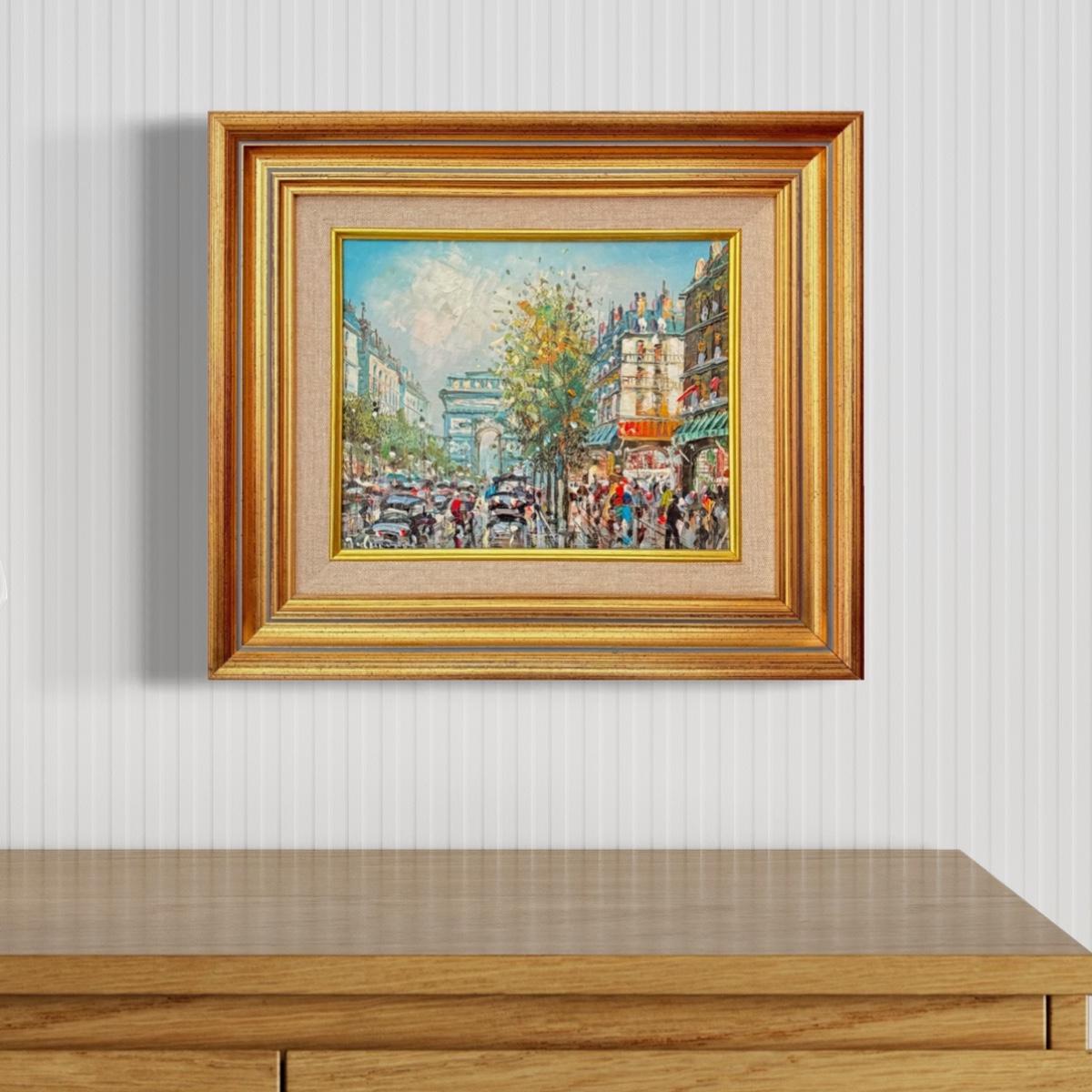 FR082 Original Oil on Canva of Paris Street Scene in Gold Frame