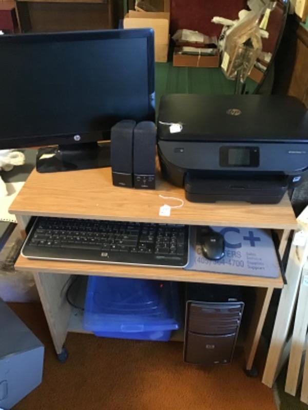 #fr28. HP computer, monitor, CPU, keyboard, mouse, printer and desk