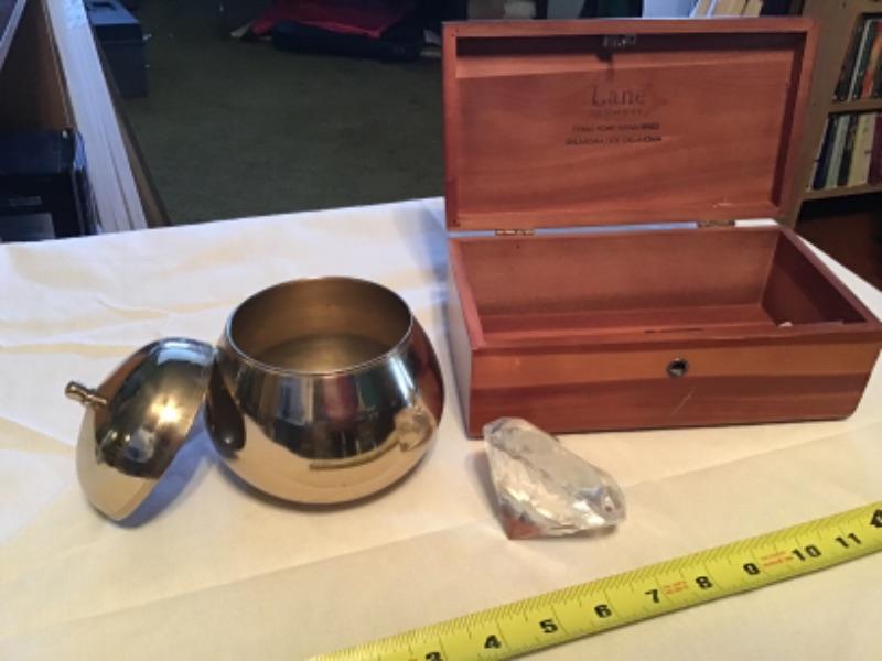 #fr5.  Mini Lane cedar chest, brass apple, diamond paperweight