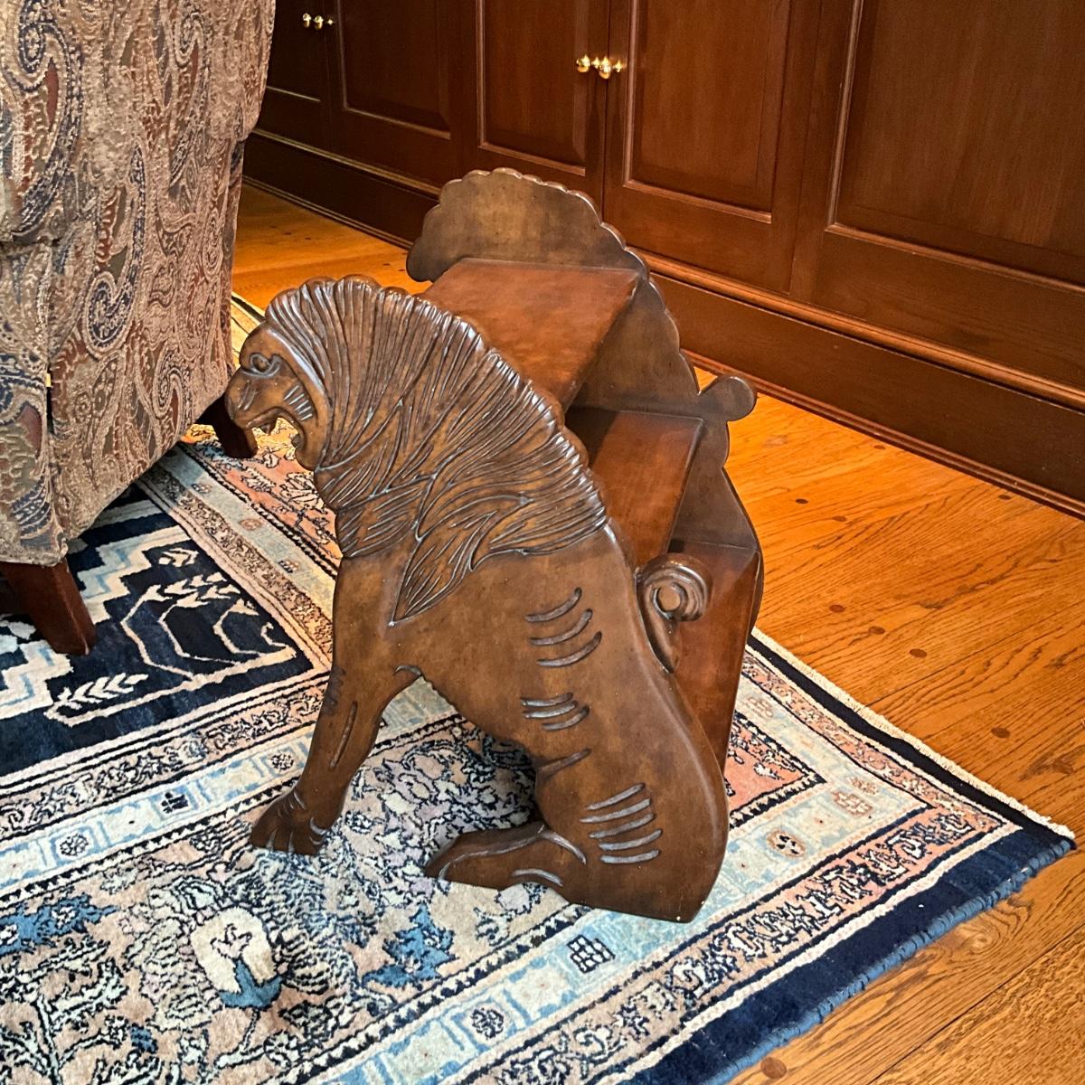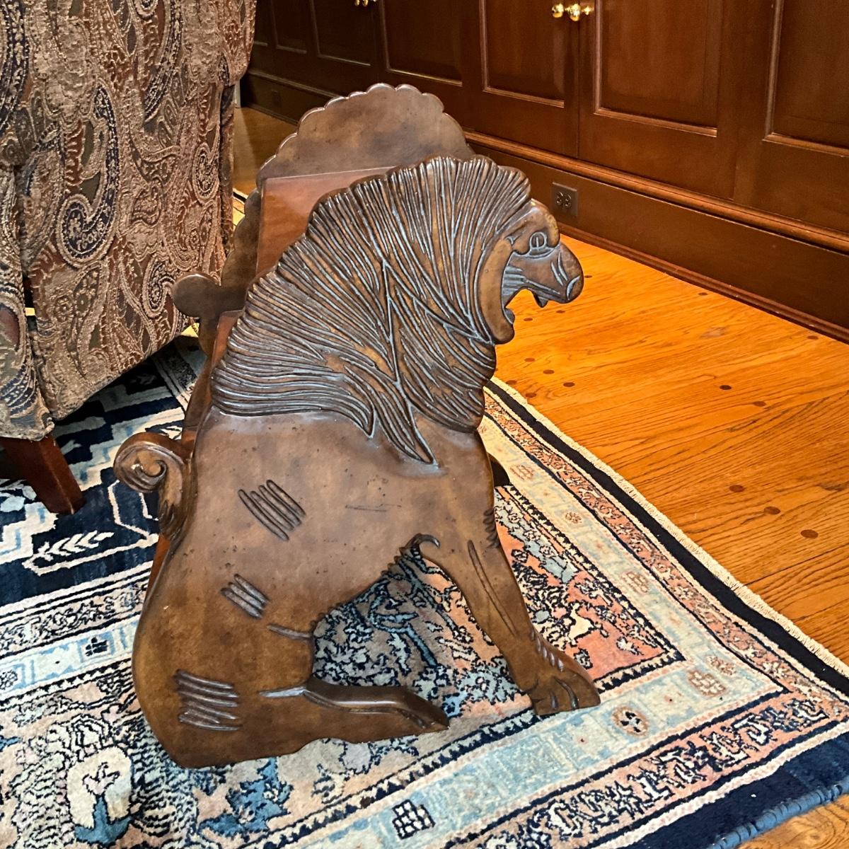 FR848 Vintage Pecan Carved Lion Bed Steps