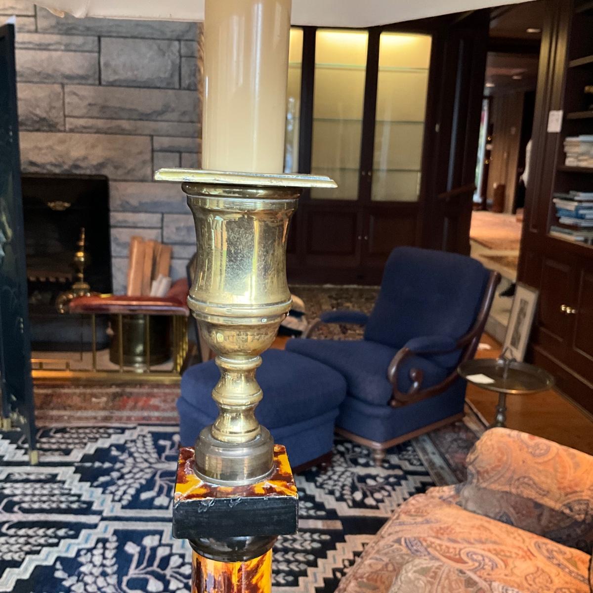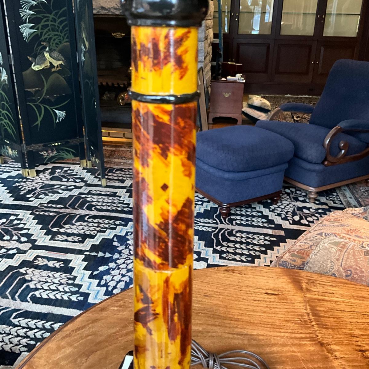 FR856 Pair of Vintage Tortoise Painted Design Candlestick Lamps