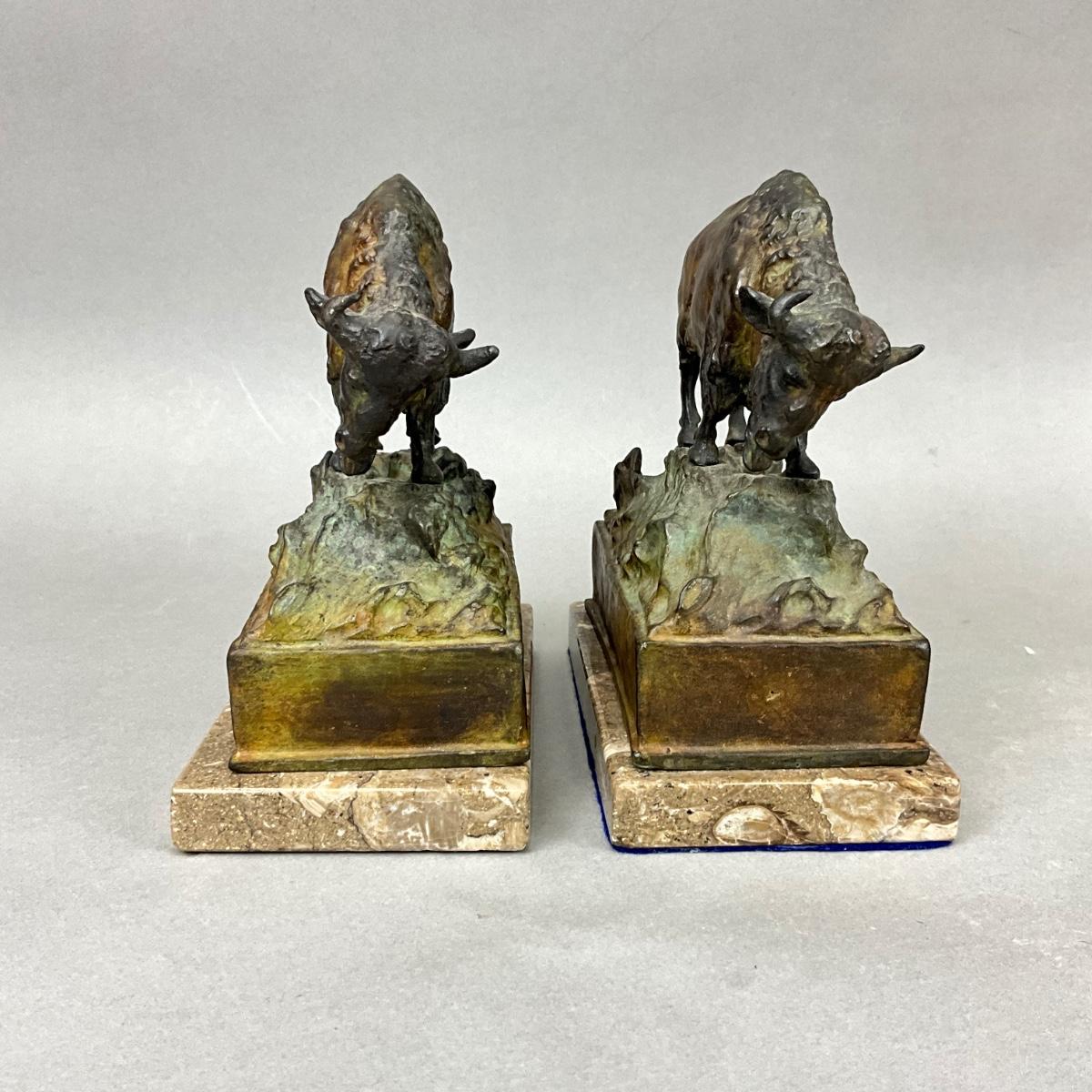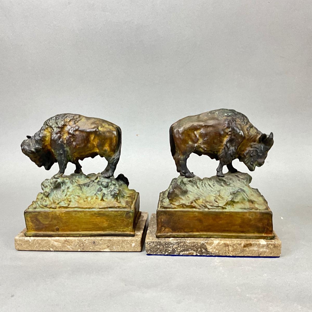 FR866 Pair of Bronze Bison Sculpture Bookends by Carl Kauba