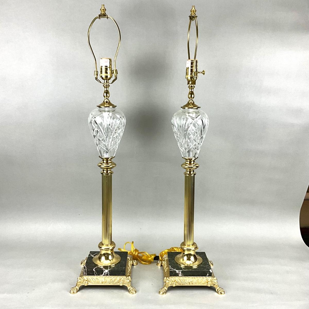 FR868 Pair of Vintage Marble Base WATERFORD Crystal Lamps