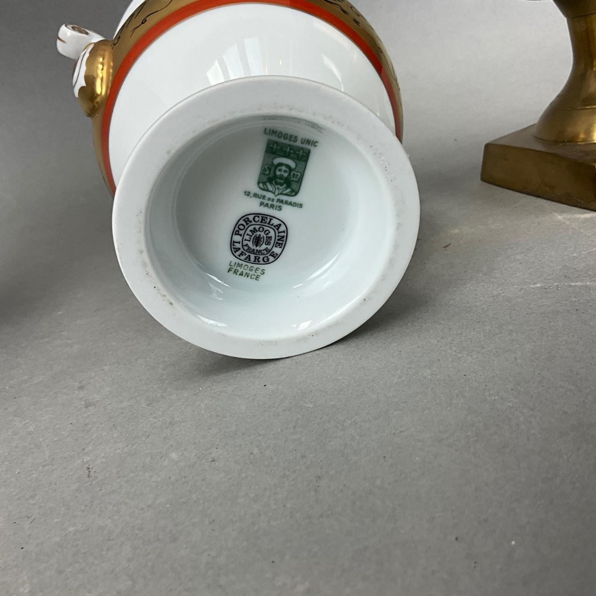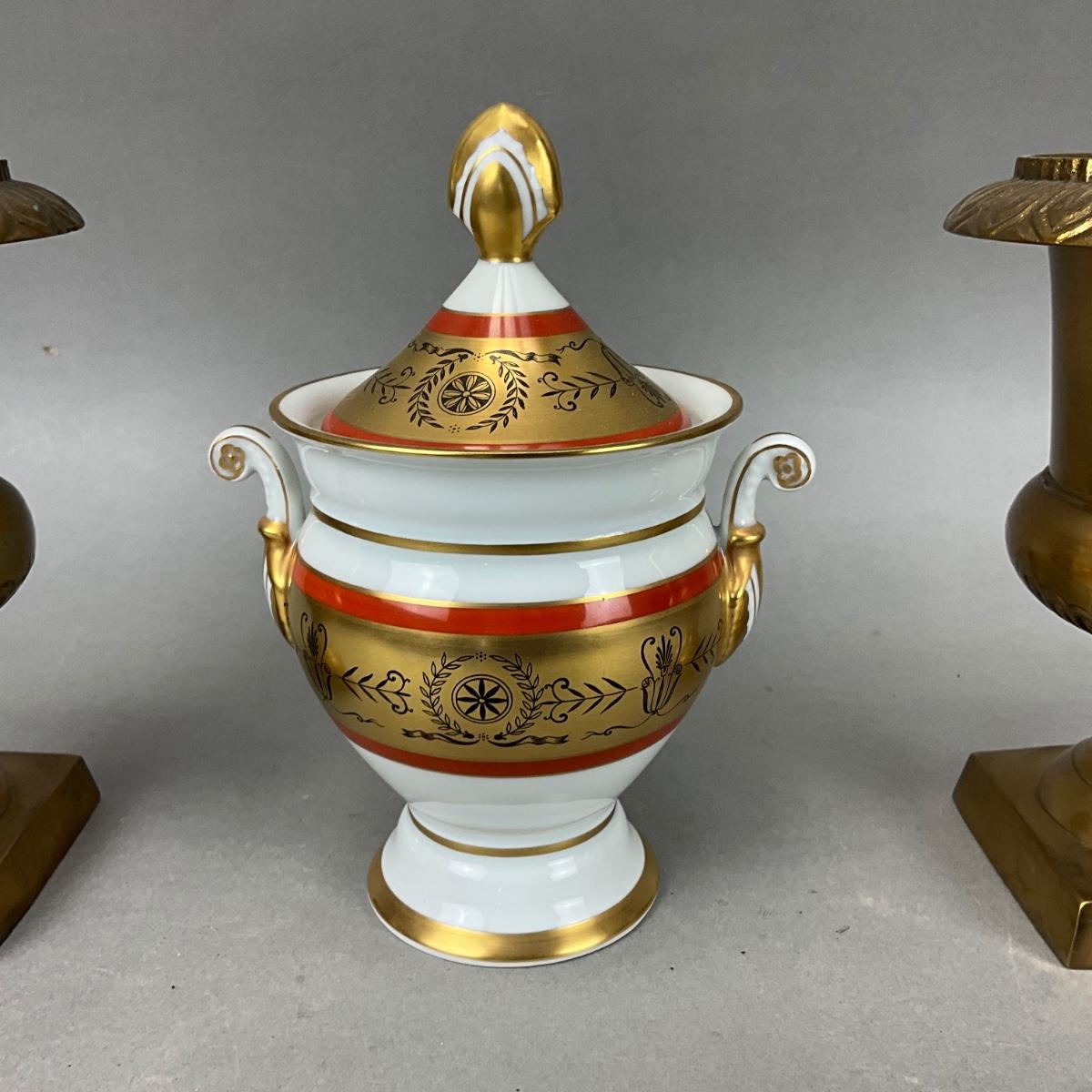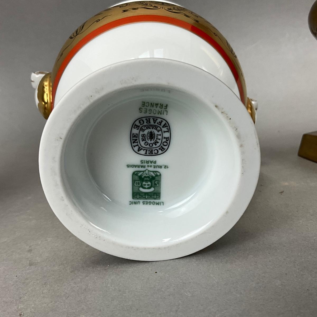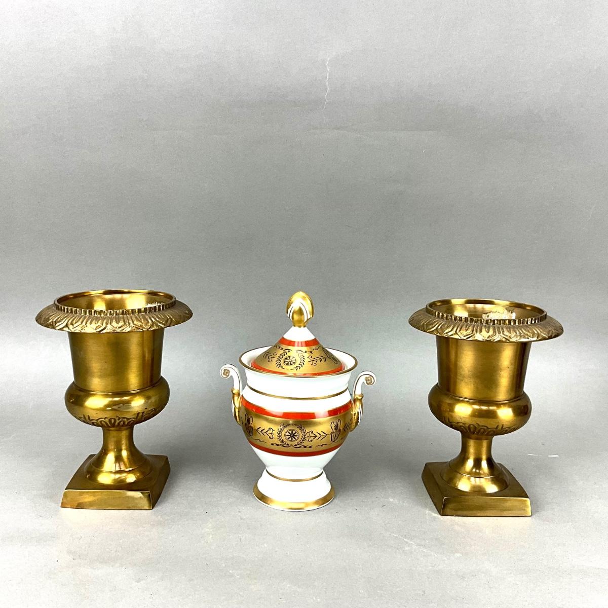 FR883 Pair of Brass Urns & Limoges Covered Porcelain Urn