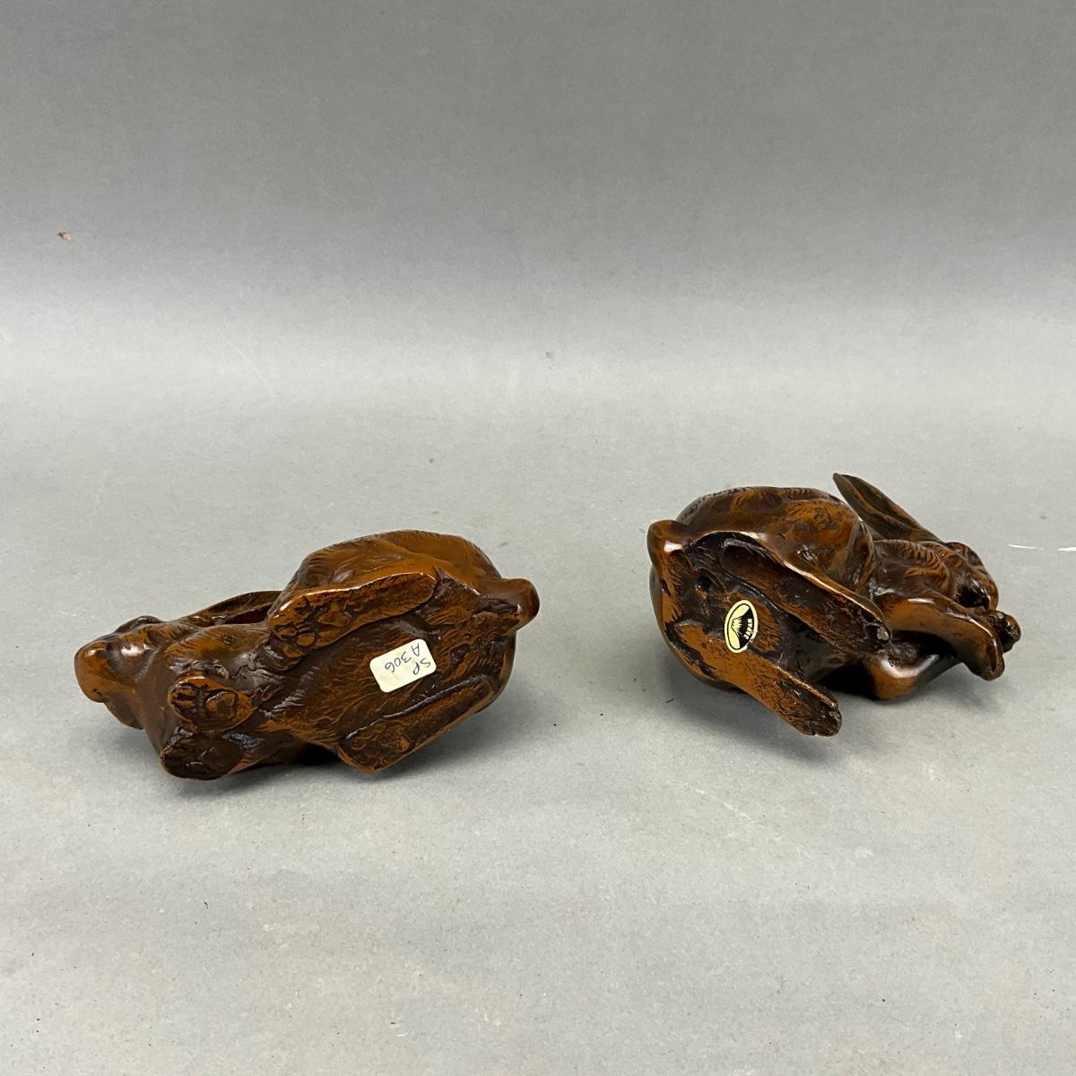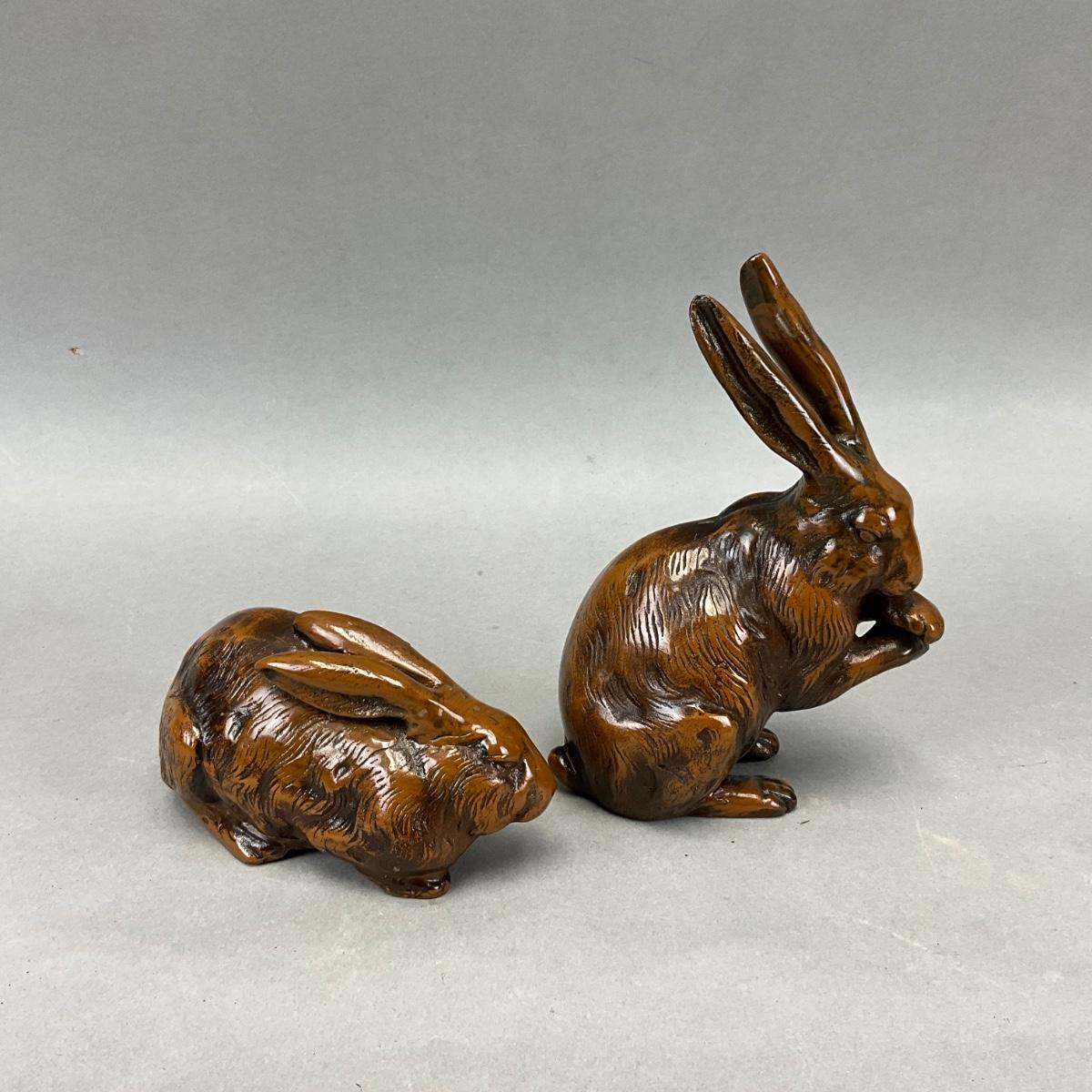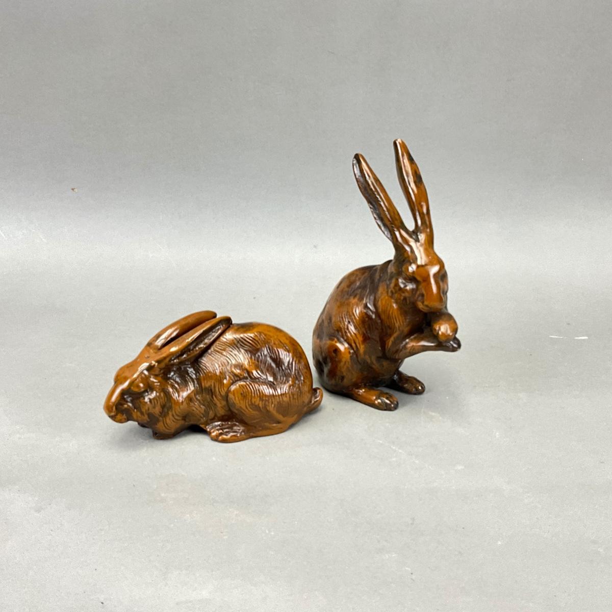 FR885 Pair of Painted Cast Bronze Playful Rabbit Sculptures