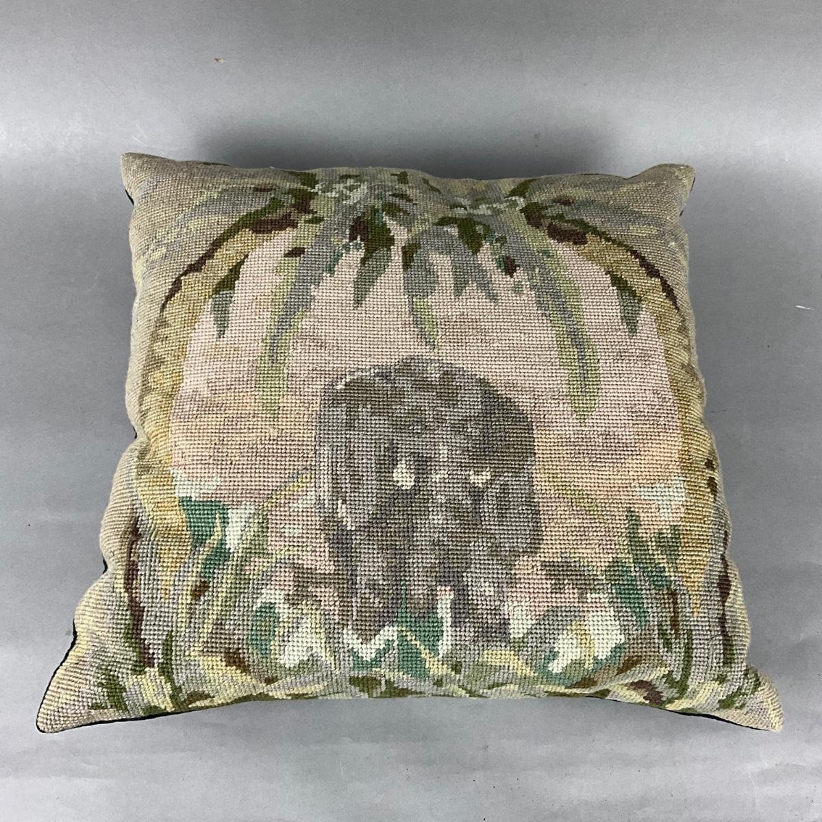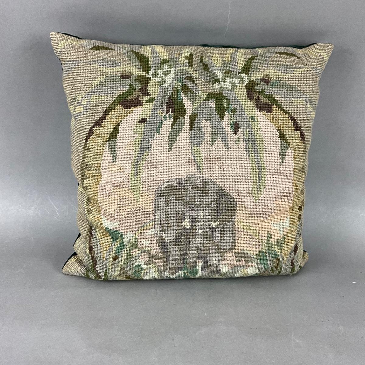 FR939 Vintage Elephant Needlepoint Down Pillow