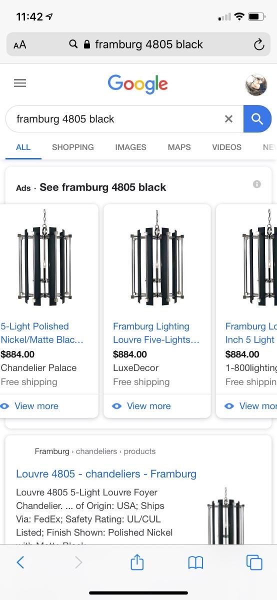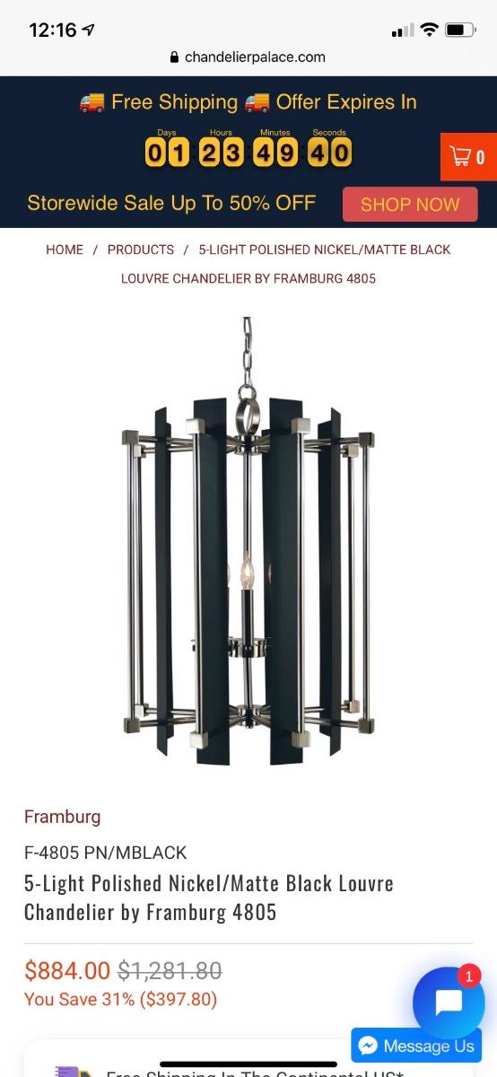 Framburg Lighting Louvre - Five Light Chandelier brand new polish nickel and black
