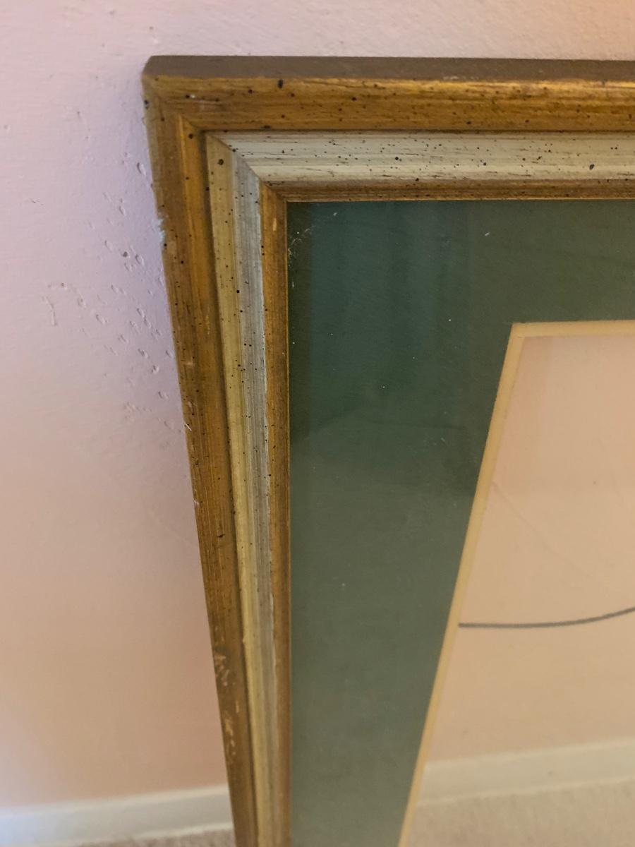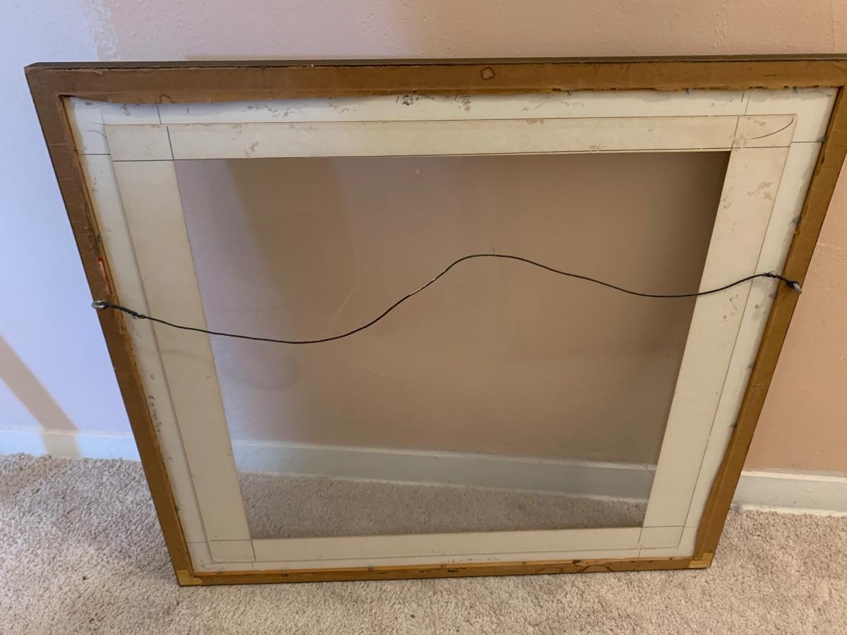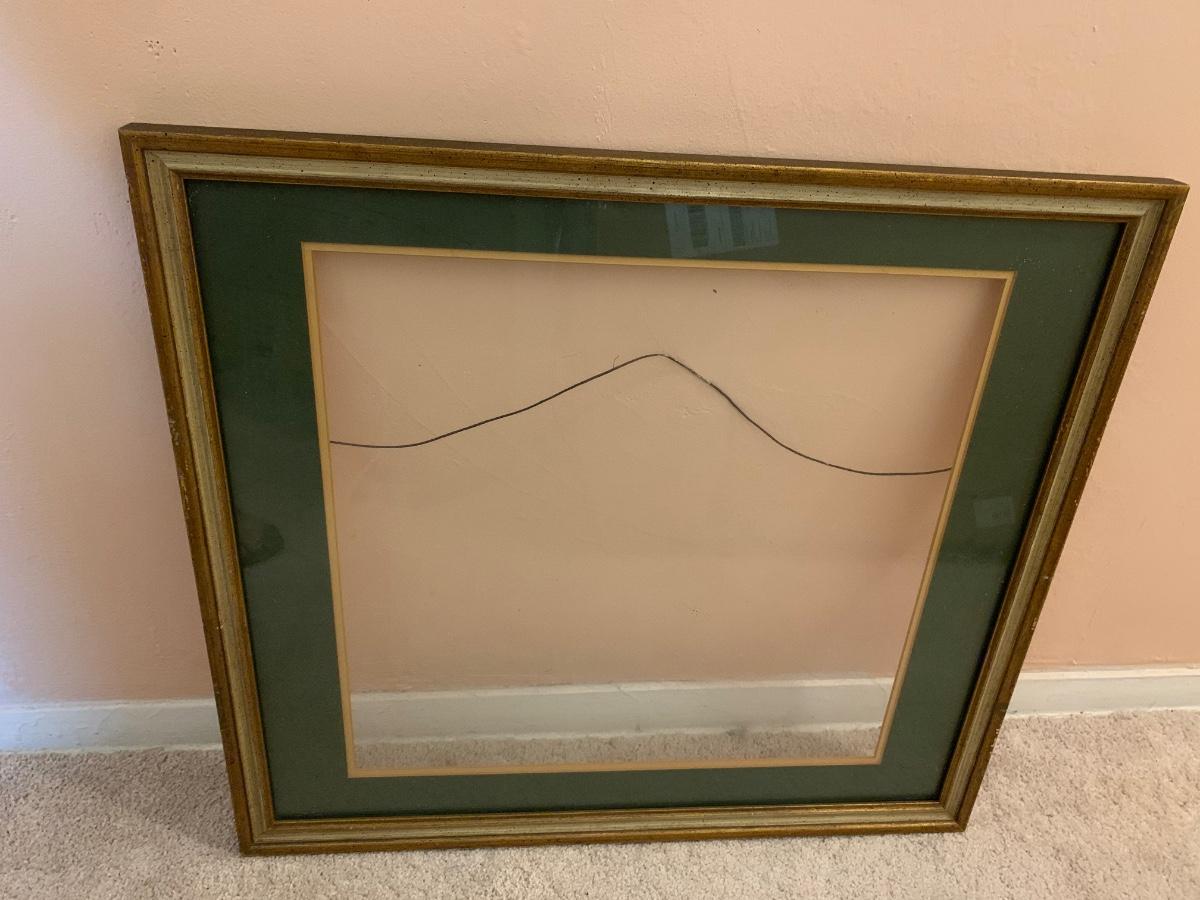 frame with glass, wire hanger, and green mat 23.5"W 22"H