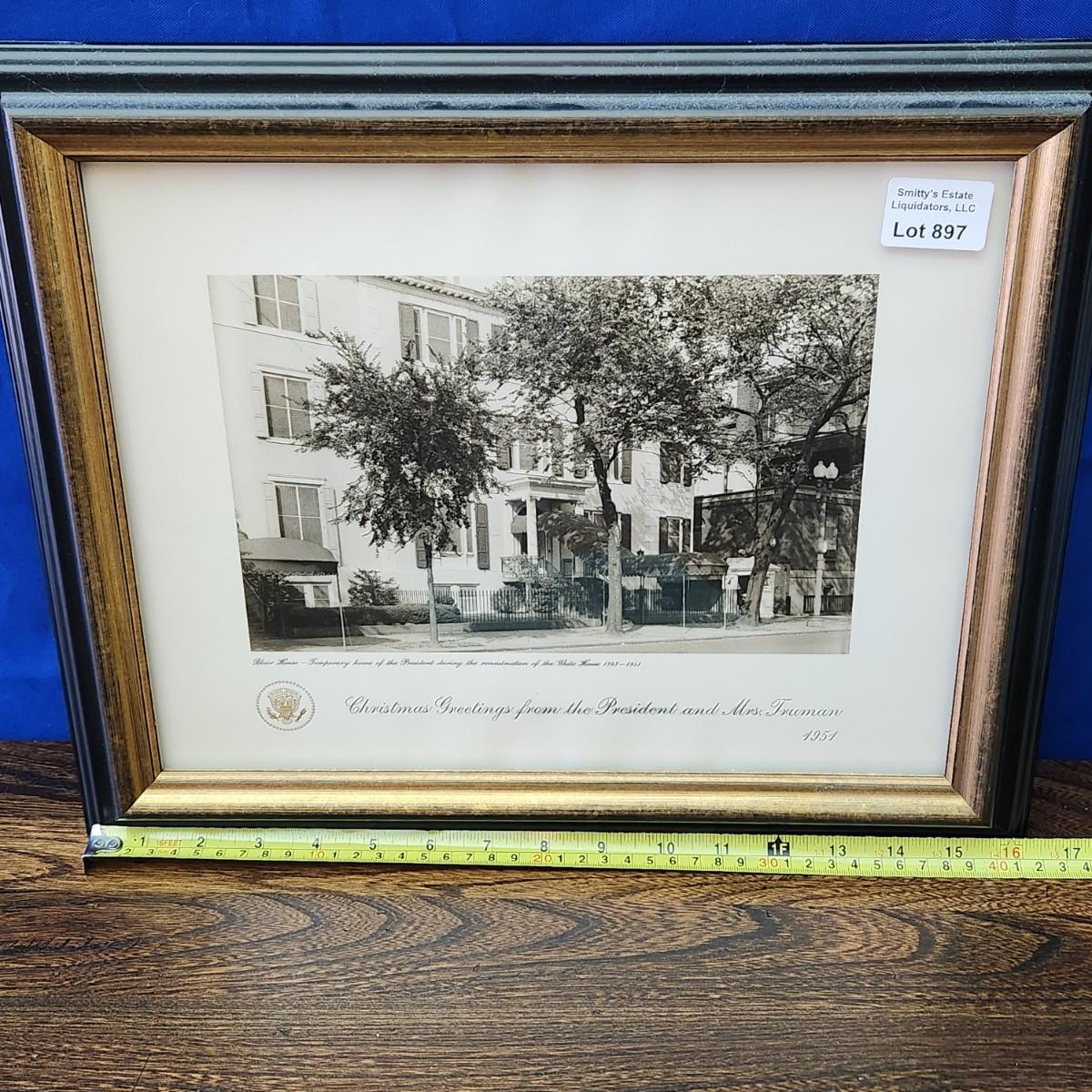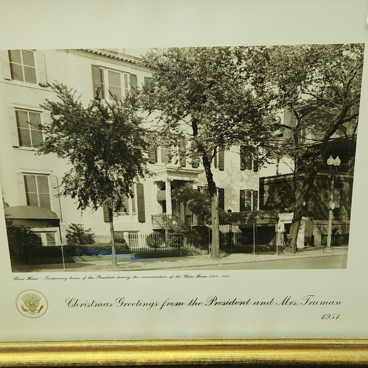 Framed 1951 Blair House President & Mrs. Truman's Christmas Card