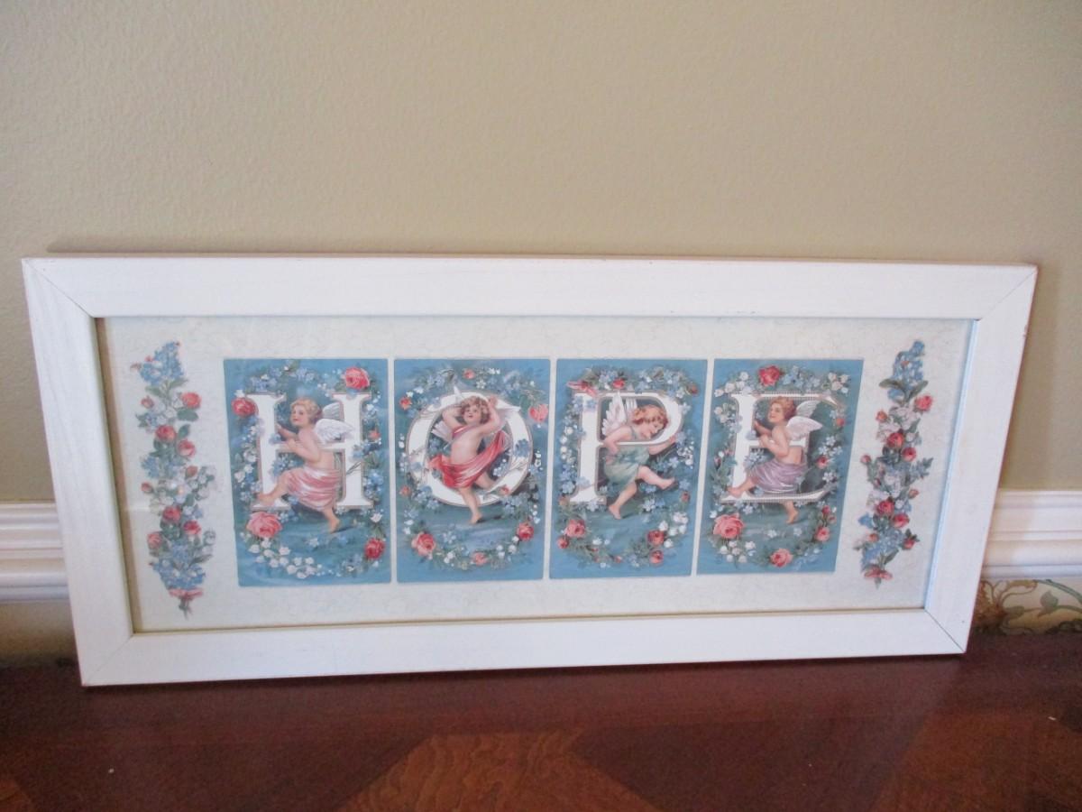 Framed 22" x 10 1/4" Cherub Hope Picture