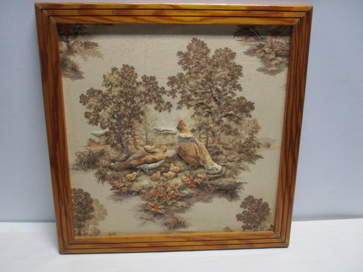 Framed 3D Raised Fabric Bird Wall Art