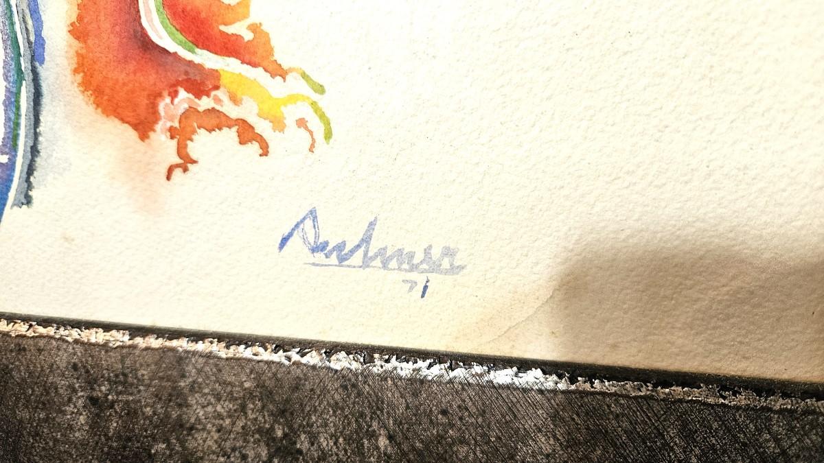 Framed Abstract Rainbow Swirl Print, 24 x 19