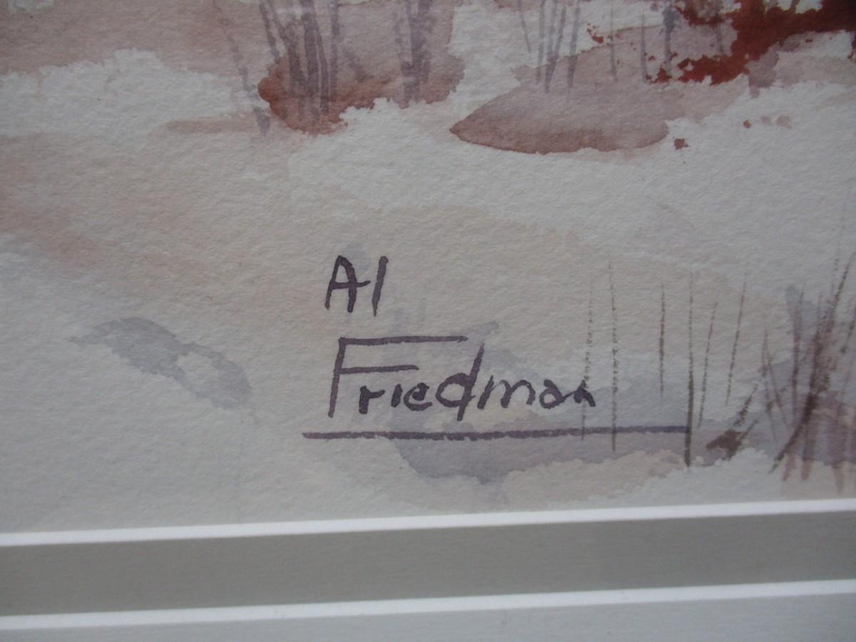 Framed Al Friedman Signed Landscape Watercolor Painting 39 1/2" x 32"