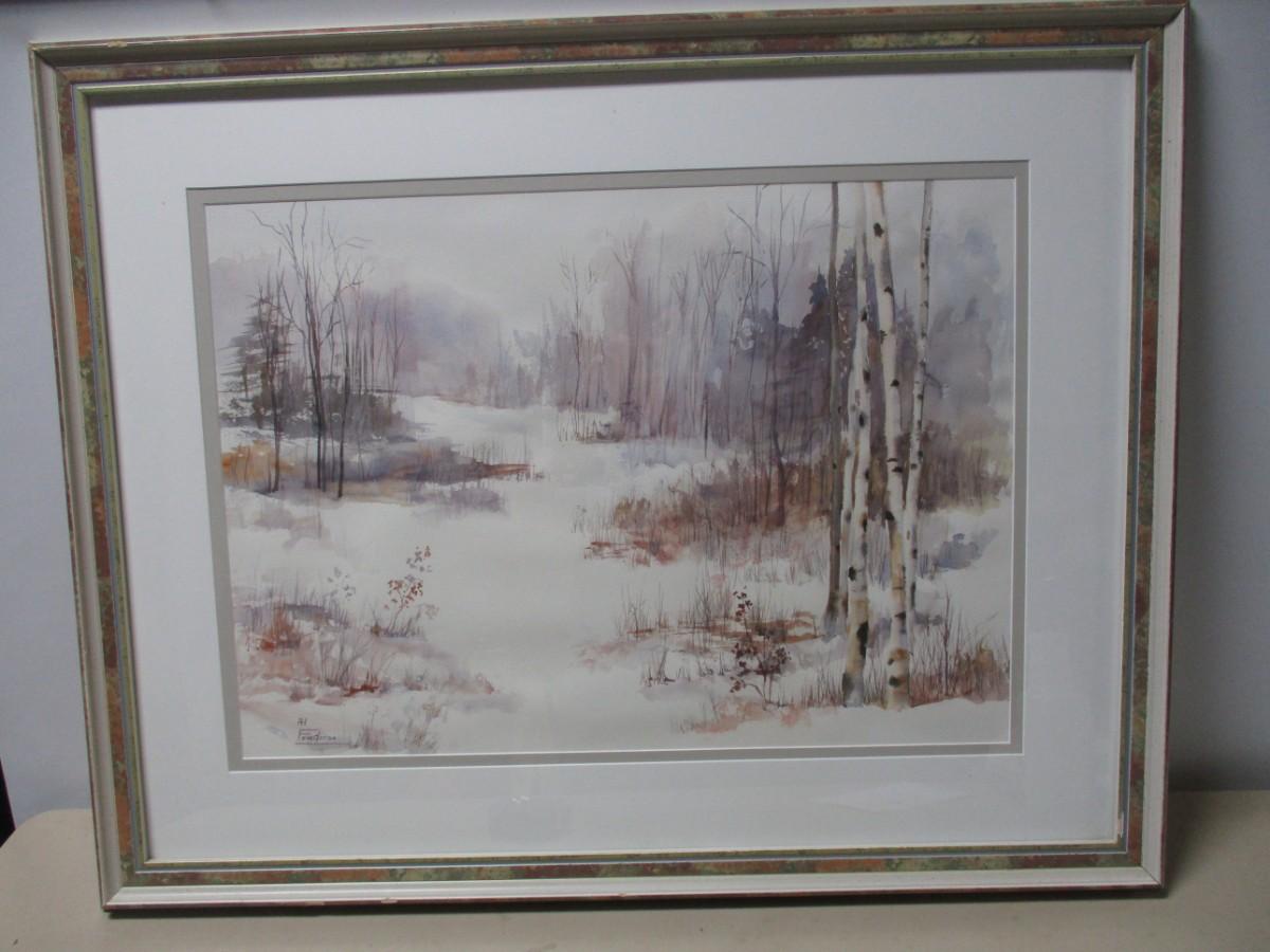 Framed Al Friedman Landscape Watercolor Painting 39 1/2" x 32"