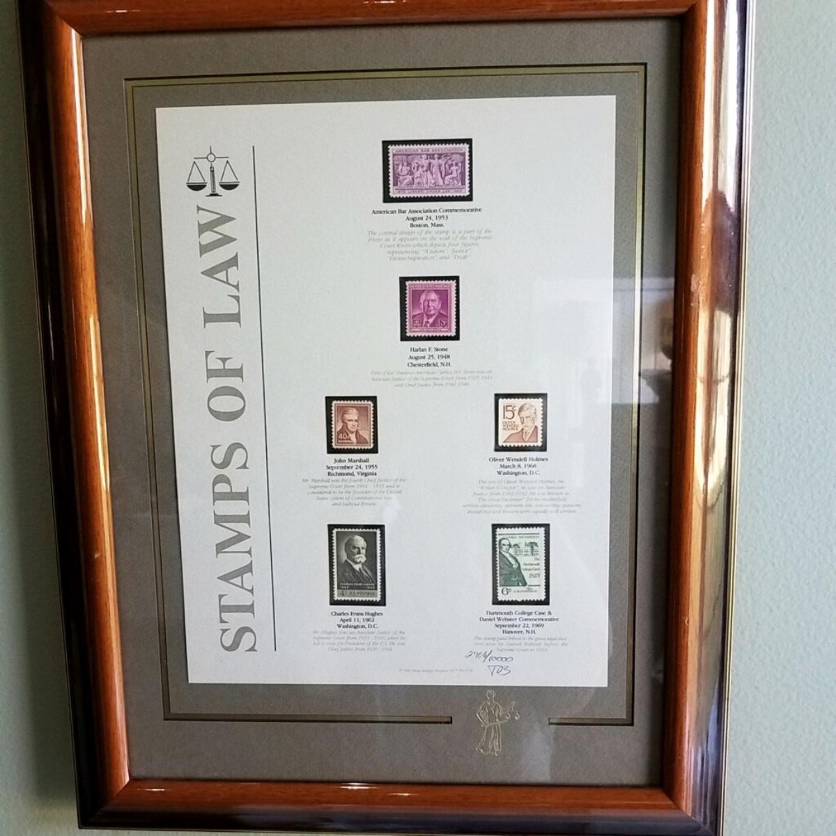 Framed and matted Stamps of Law