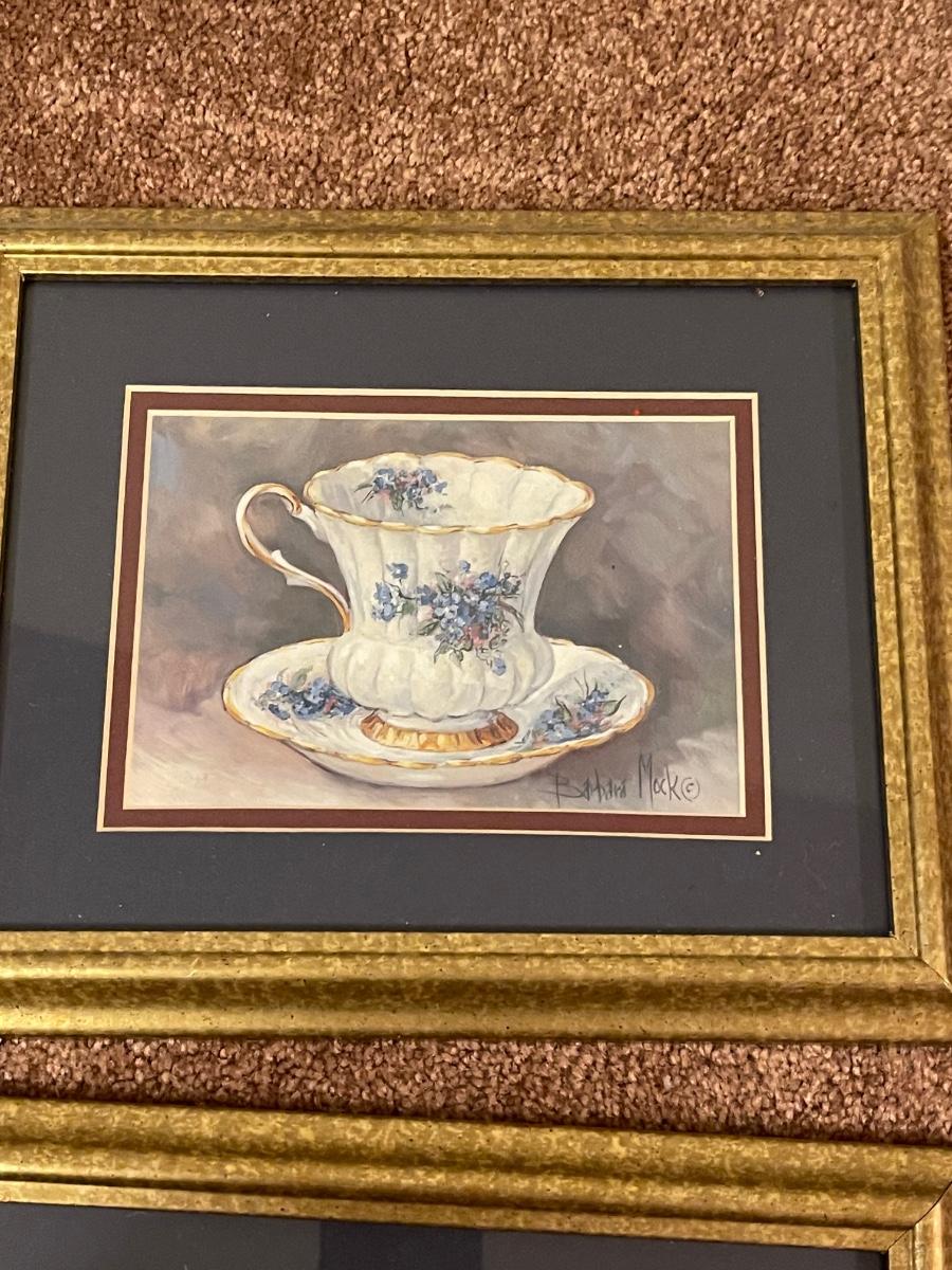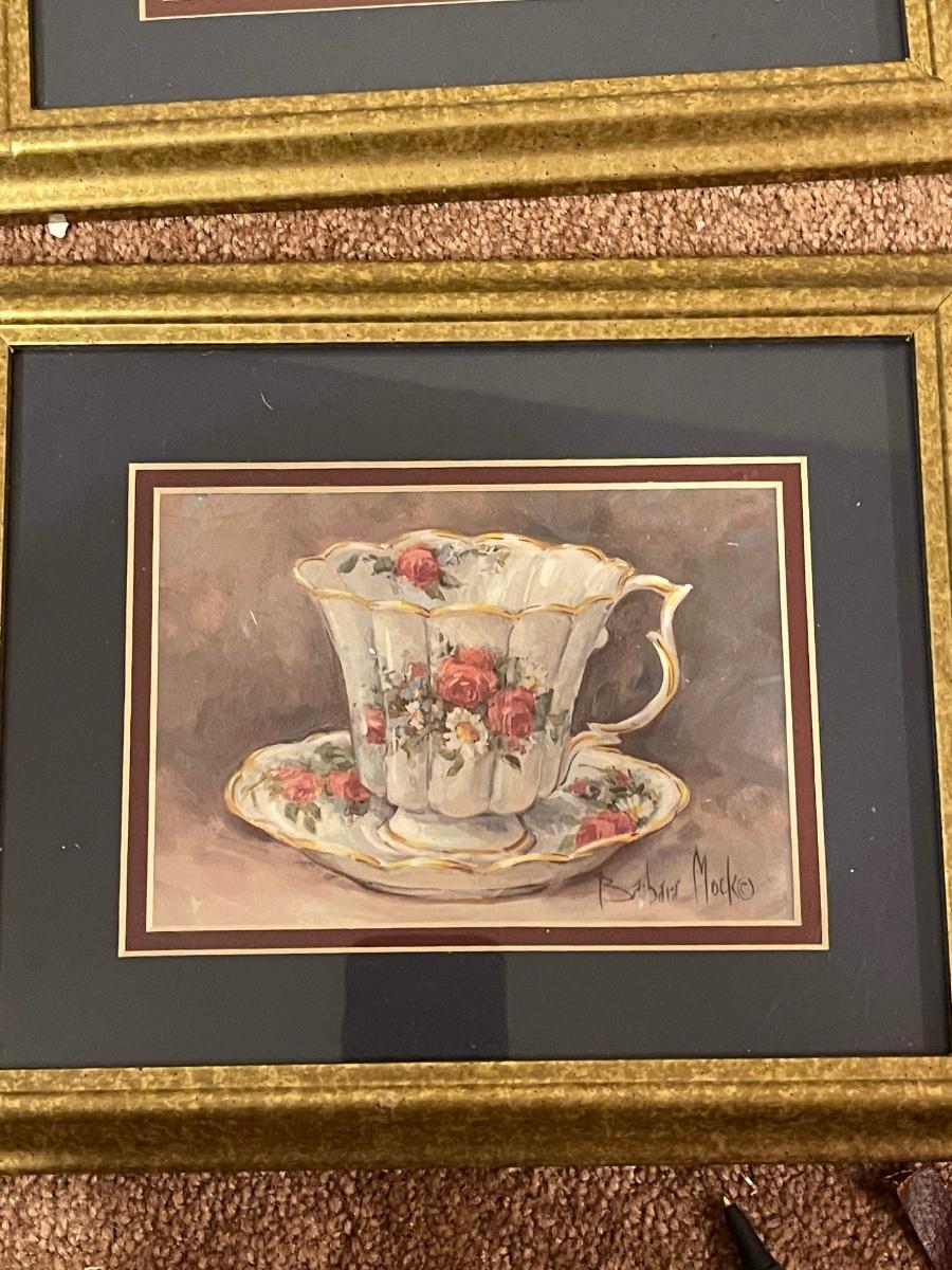 Framed and Signed Barbara Mock Prints - Nosegay Teacup and Rose Bouquet Teacup