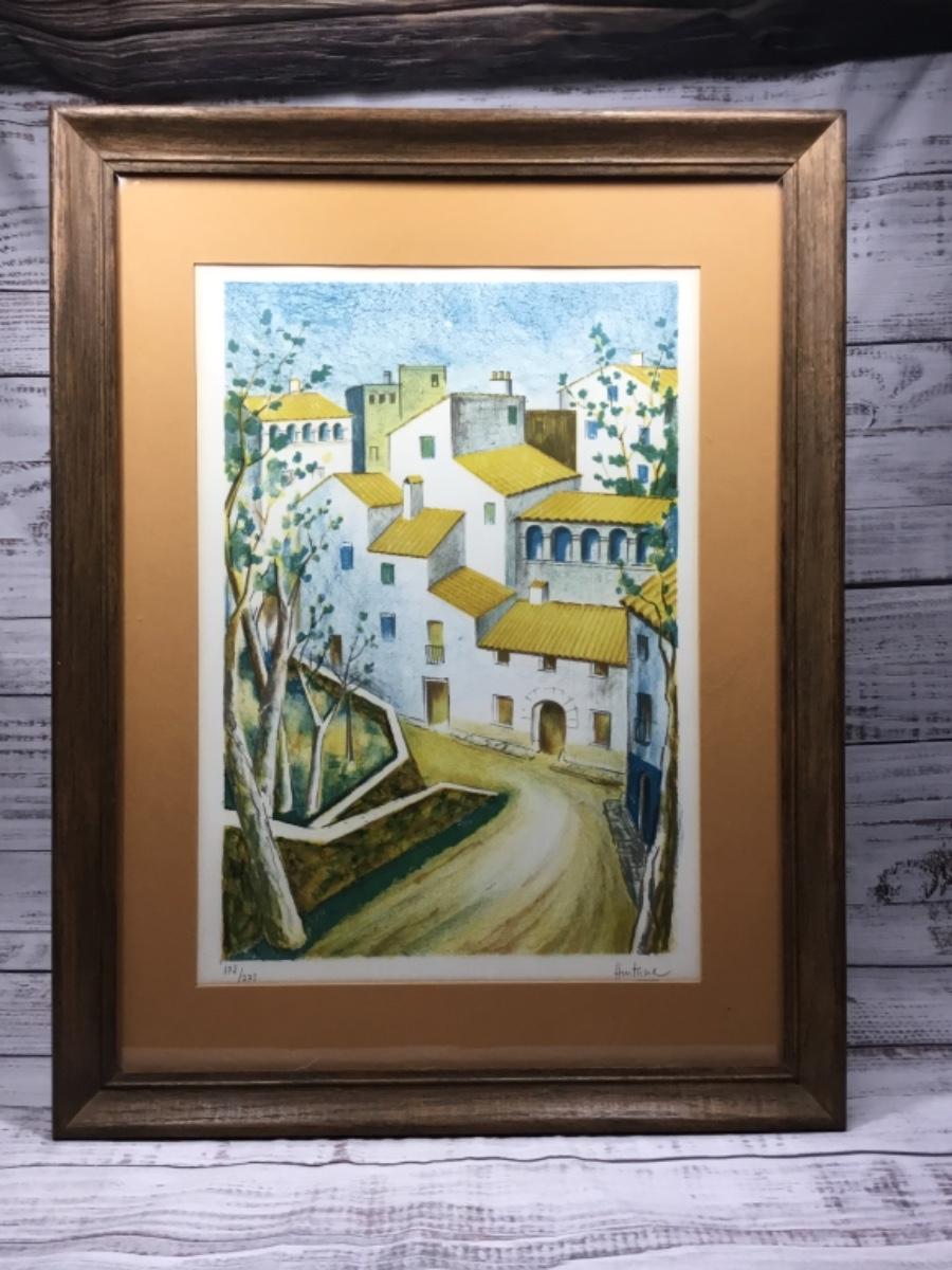 Framed and Signed Cityscape Town Lithograph
