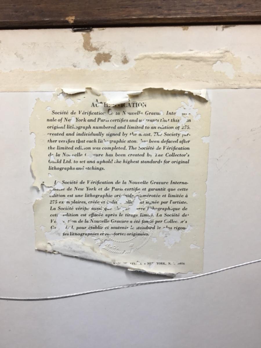 20x27 inch framed, numbered, and signed lithograph. Certificate of authenticity is on the back of the frame.