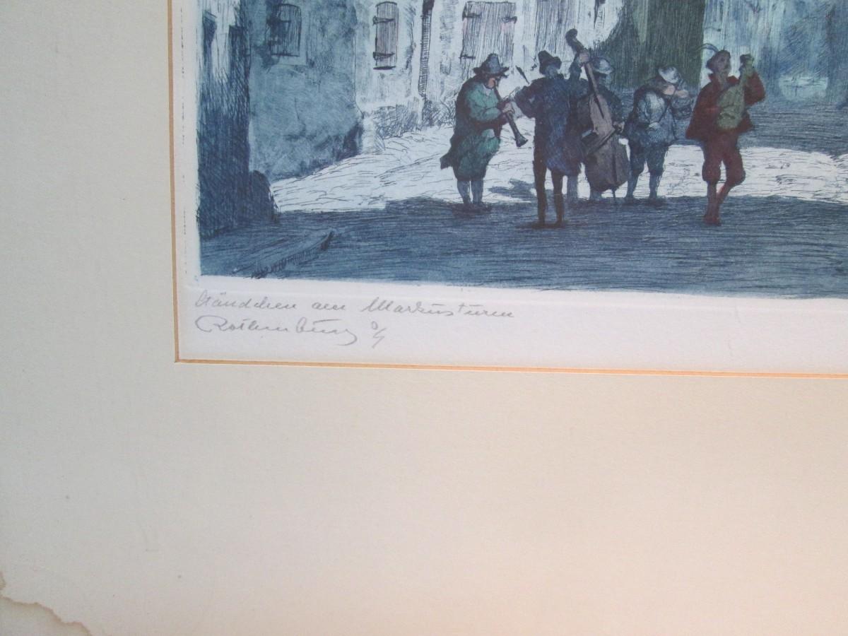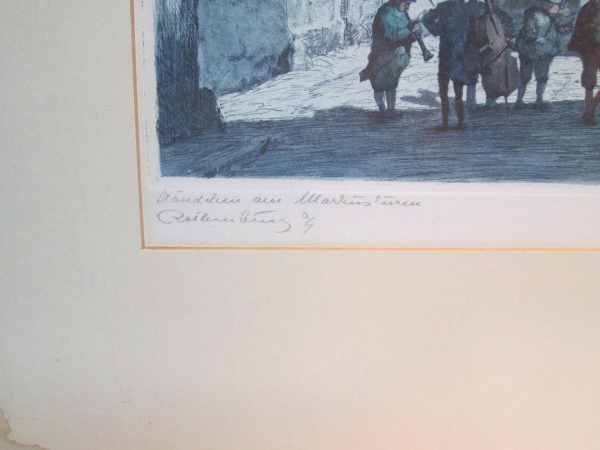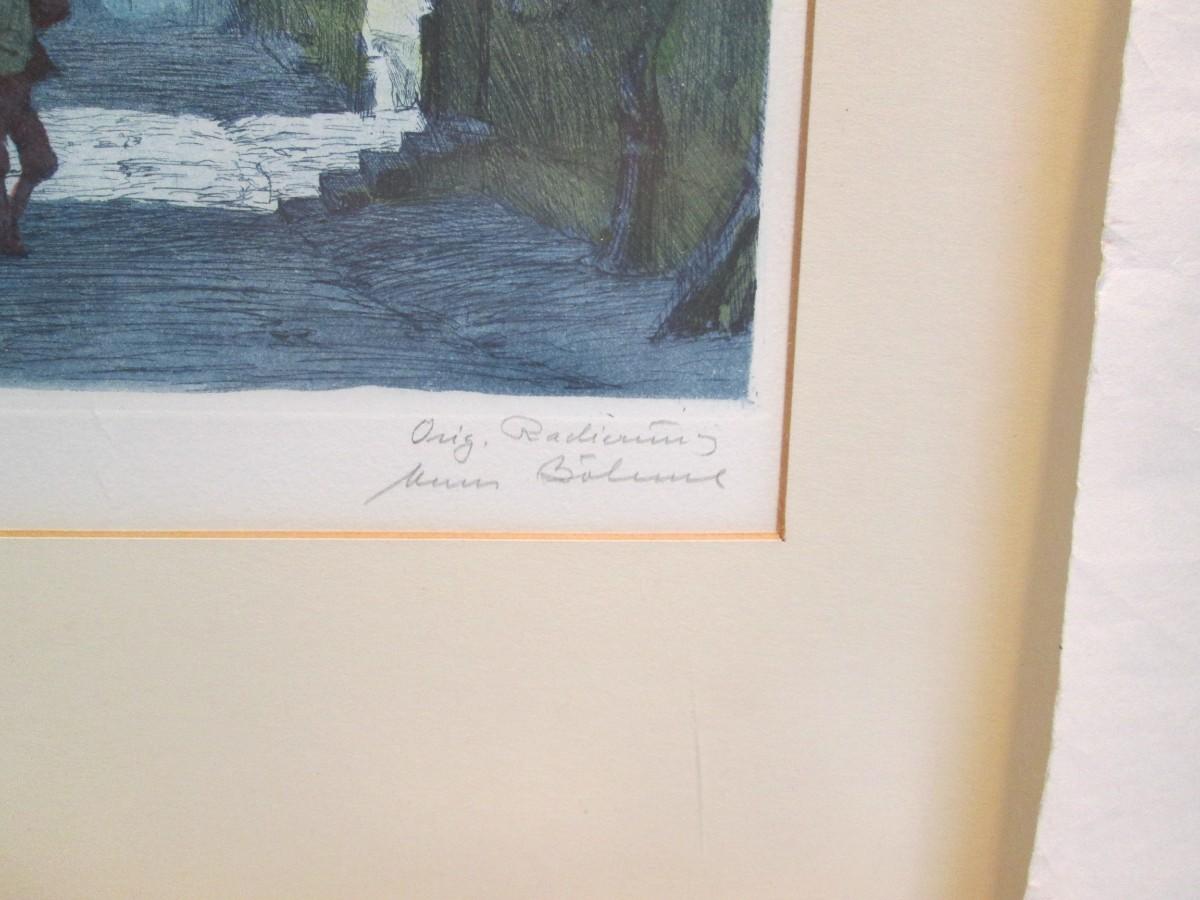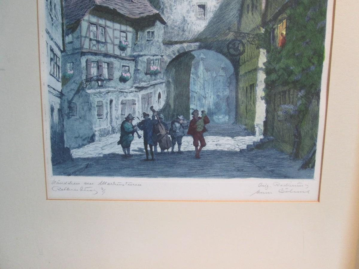Framed piece is 18" wide x 22 3/4" tall. Has water marks on the edges of the mat.