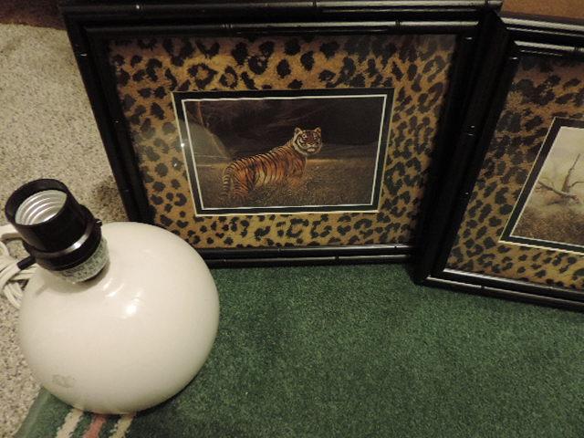 FRAMED ANIMAL ART AND TABLE LAMPS