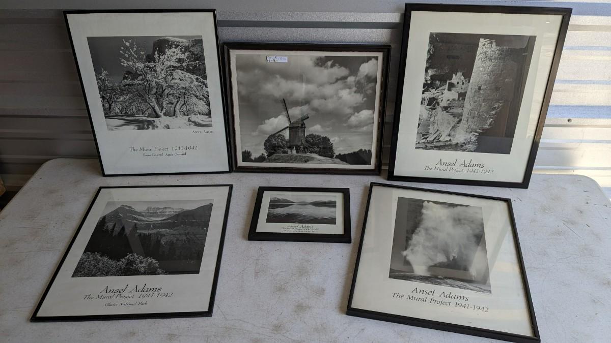 (3) 16.25"x 20.25", (1) 9"x11", (1) 17"x21" prints that are from the 1941-42 Mural Project. Also includes beautiful vintage windmill photo at 16"x19". No shipping. 2604