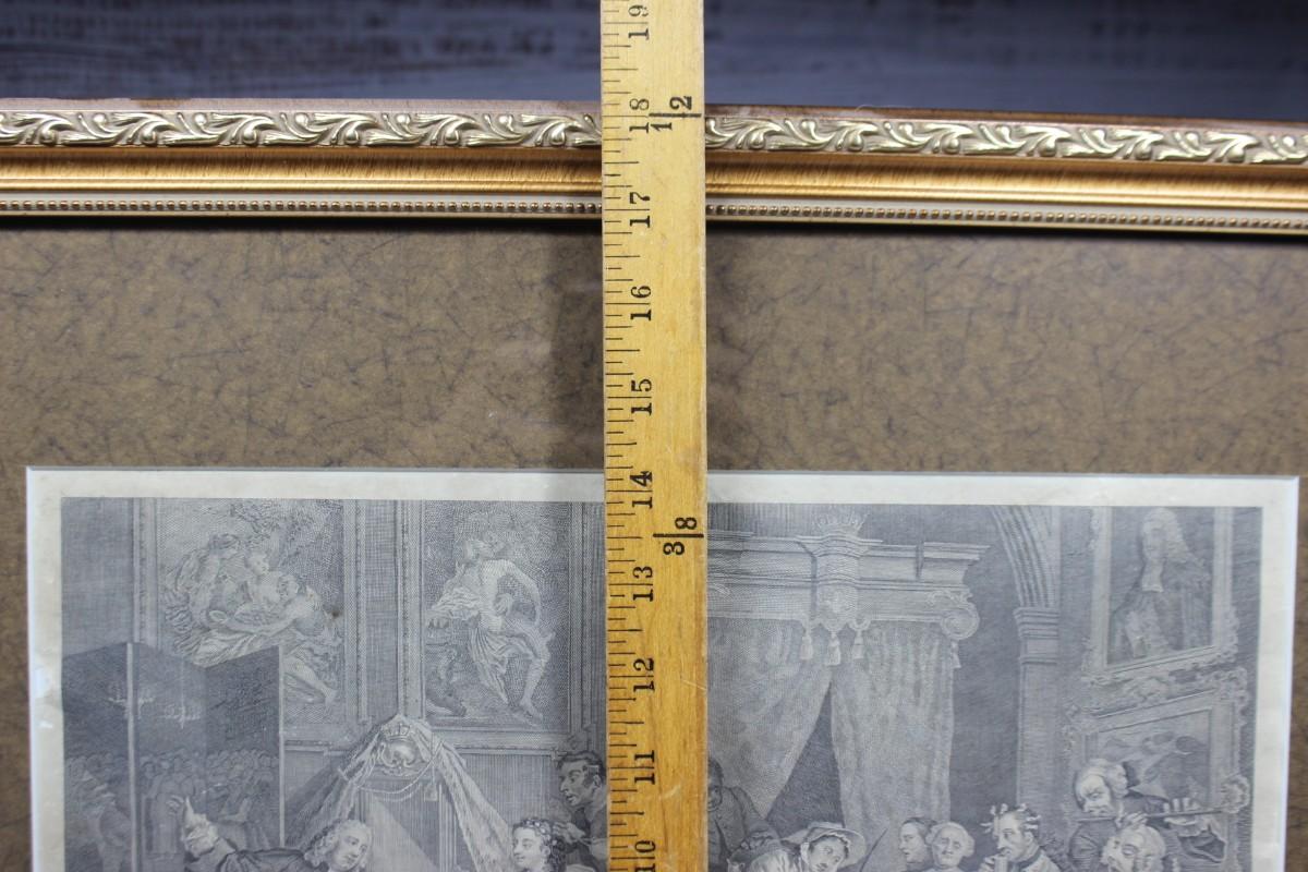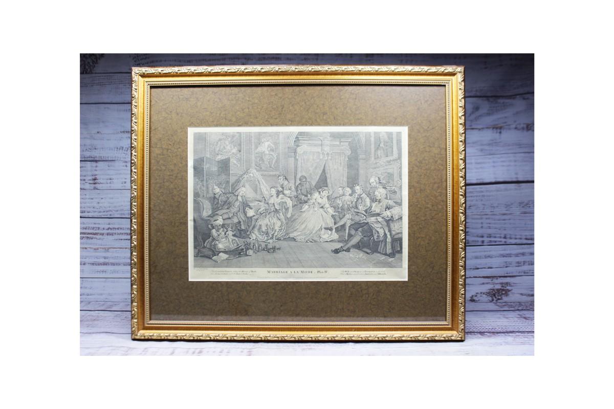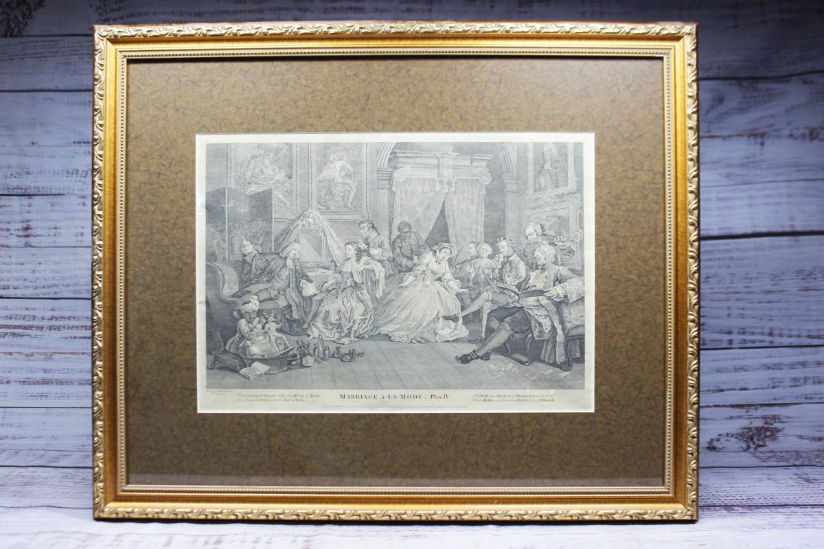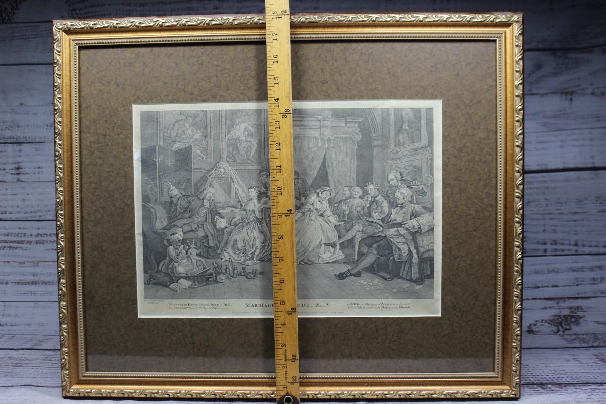 Framed Antique Print of Marriage A-La-Mode Plate IV by William Hogarth, there is no significant damage to the frame or the protective glass and is in good condition. Check pictures for more details and for sizing.
