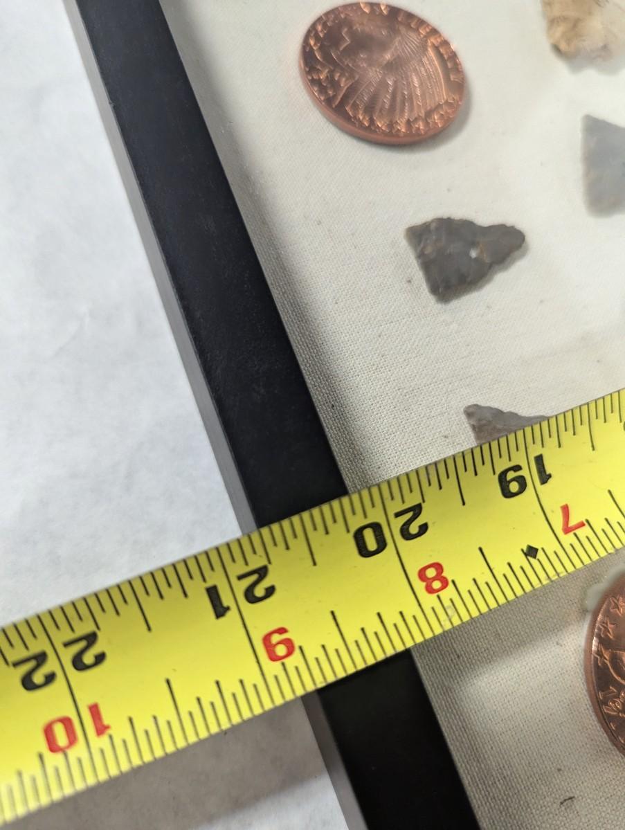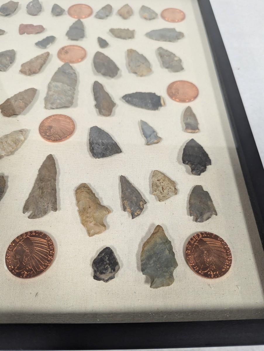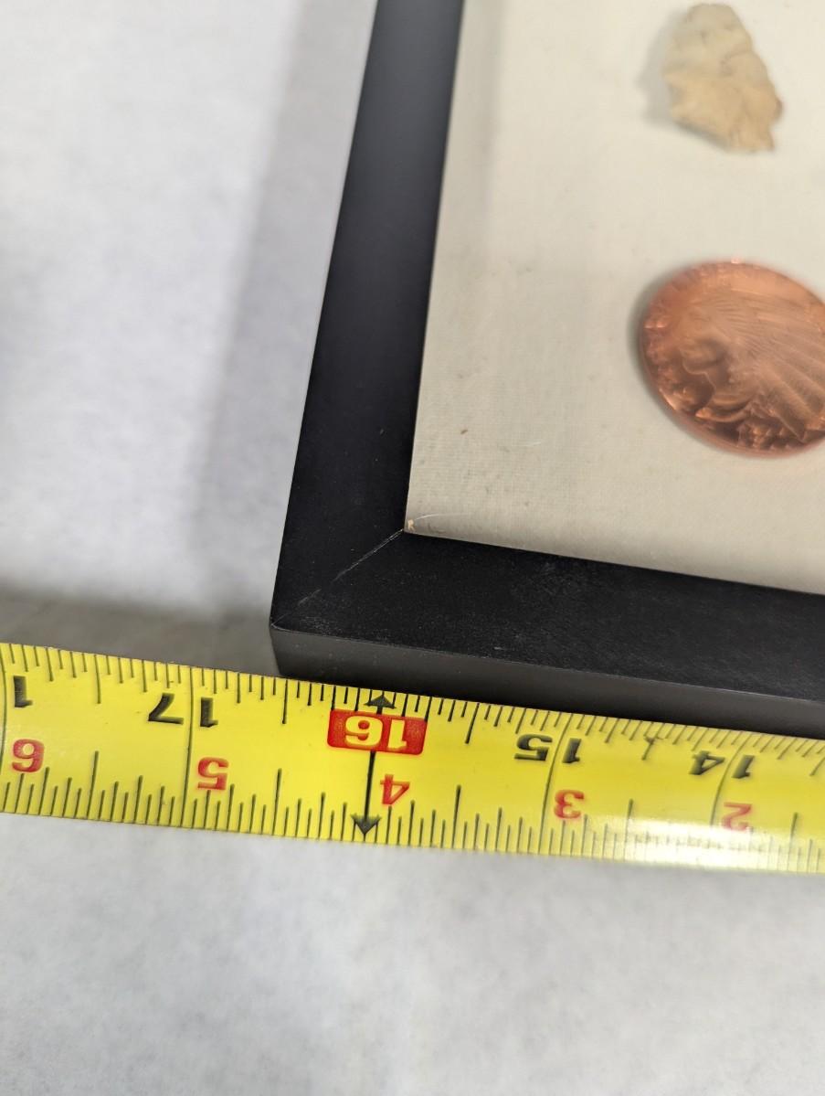 Framed Arrow Head & Native American Indian Head Copper Rounds Shadow Box